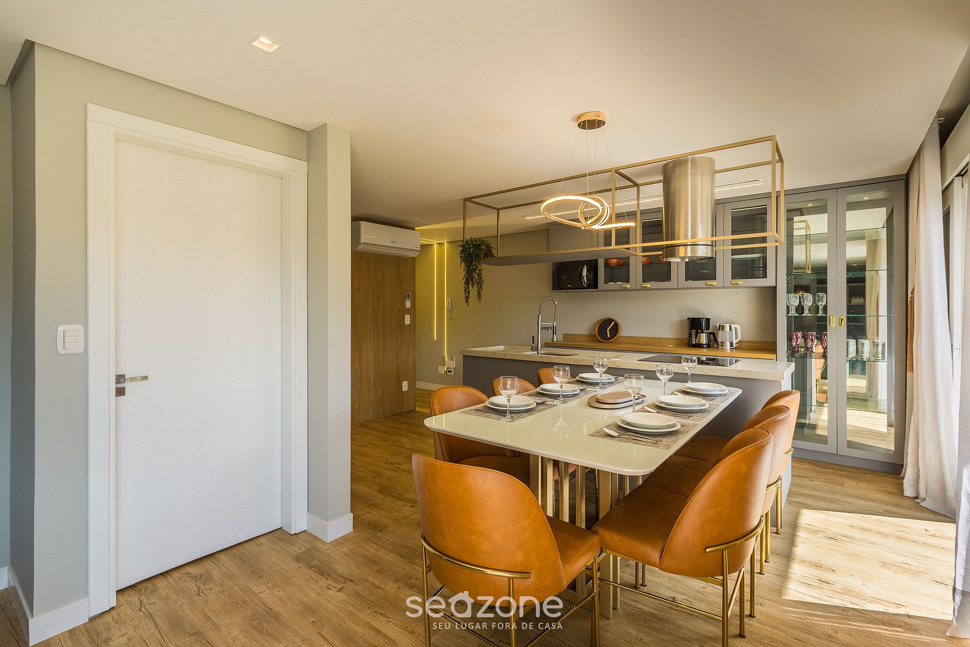- Espaço para jantar com mesa e 7 cadeiras;