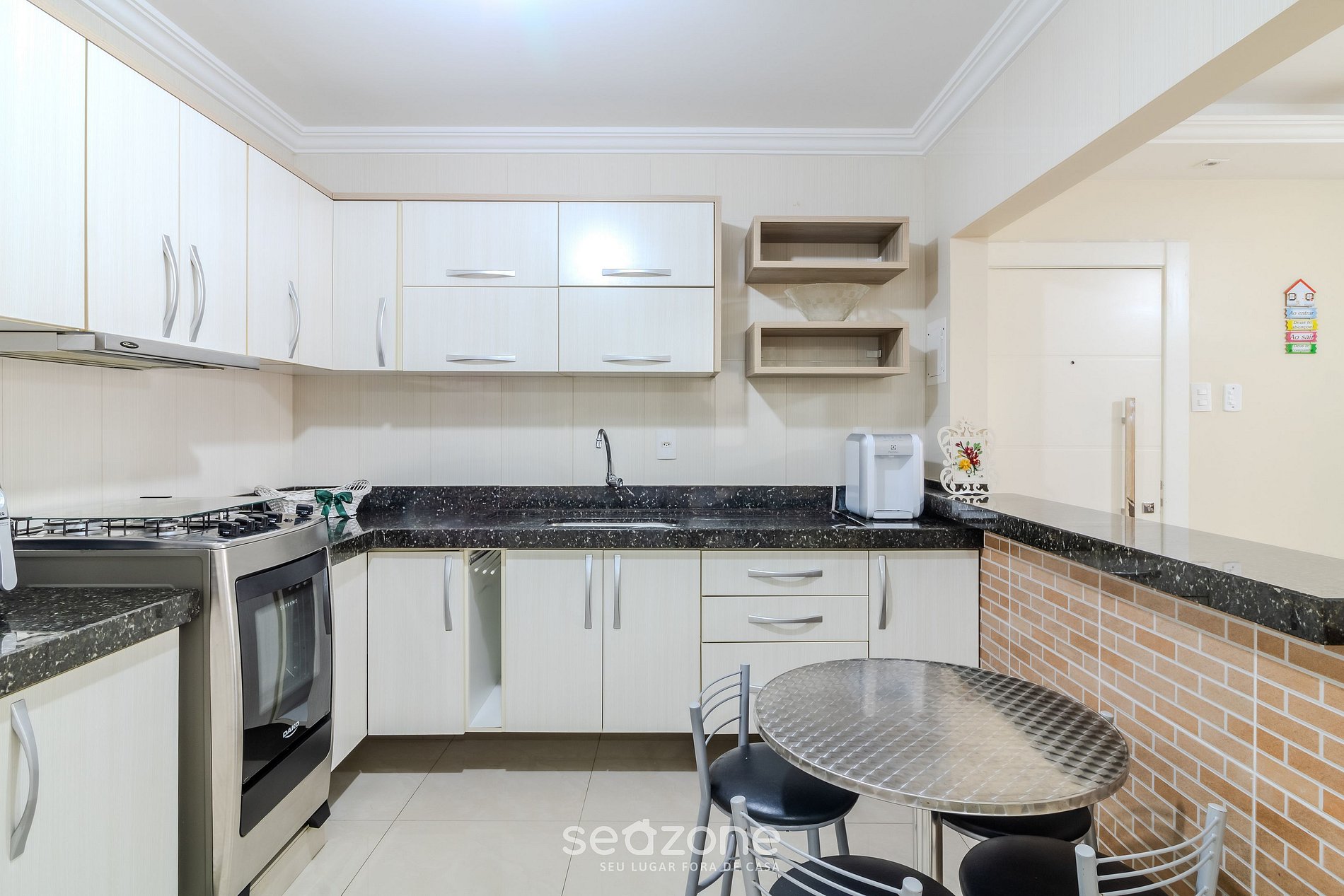- Cozinha completa com geladeira, fogão, forno, airfryer, micro-ondas, cafeteira elétrica, filtro de água, chaleira, sanduicheira, liquidificador, taças de vinho, panelas, louças e utensílios;