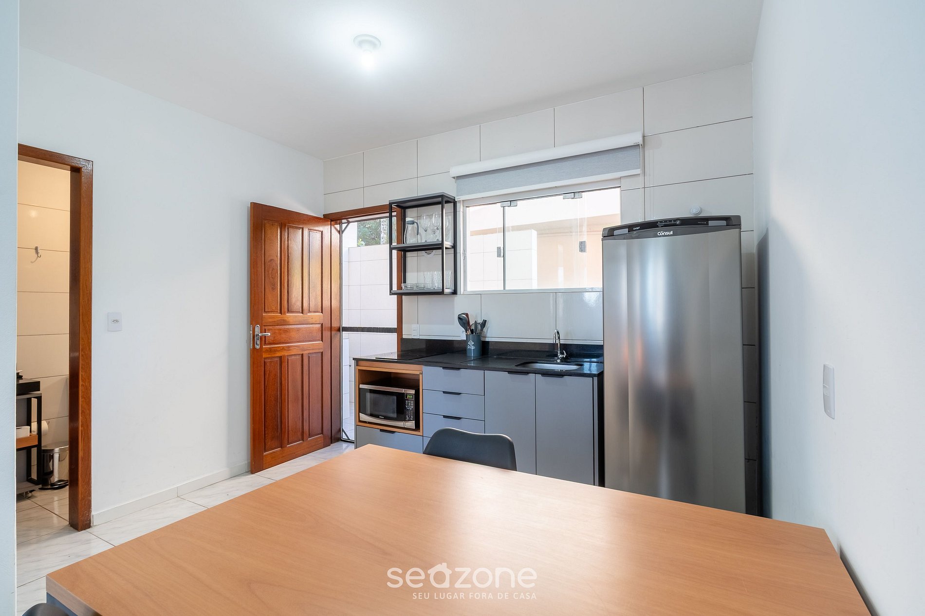 - Sala de jantar integrada com mesa e 4 cadeiras;
