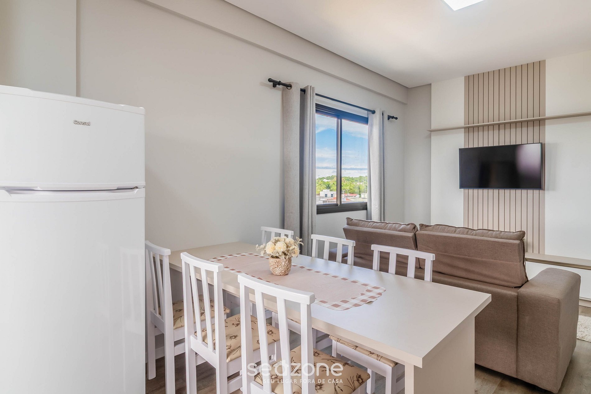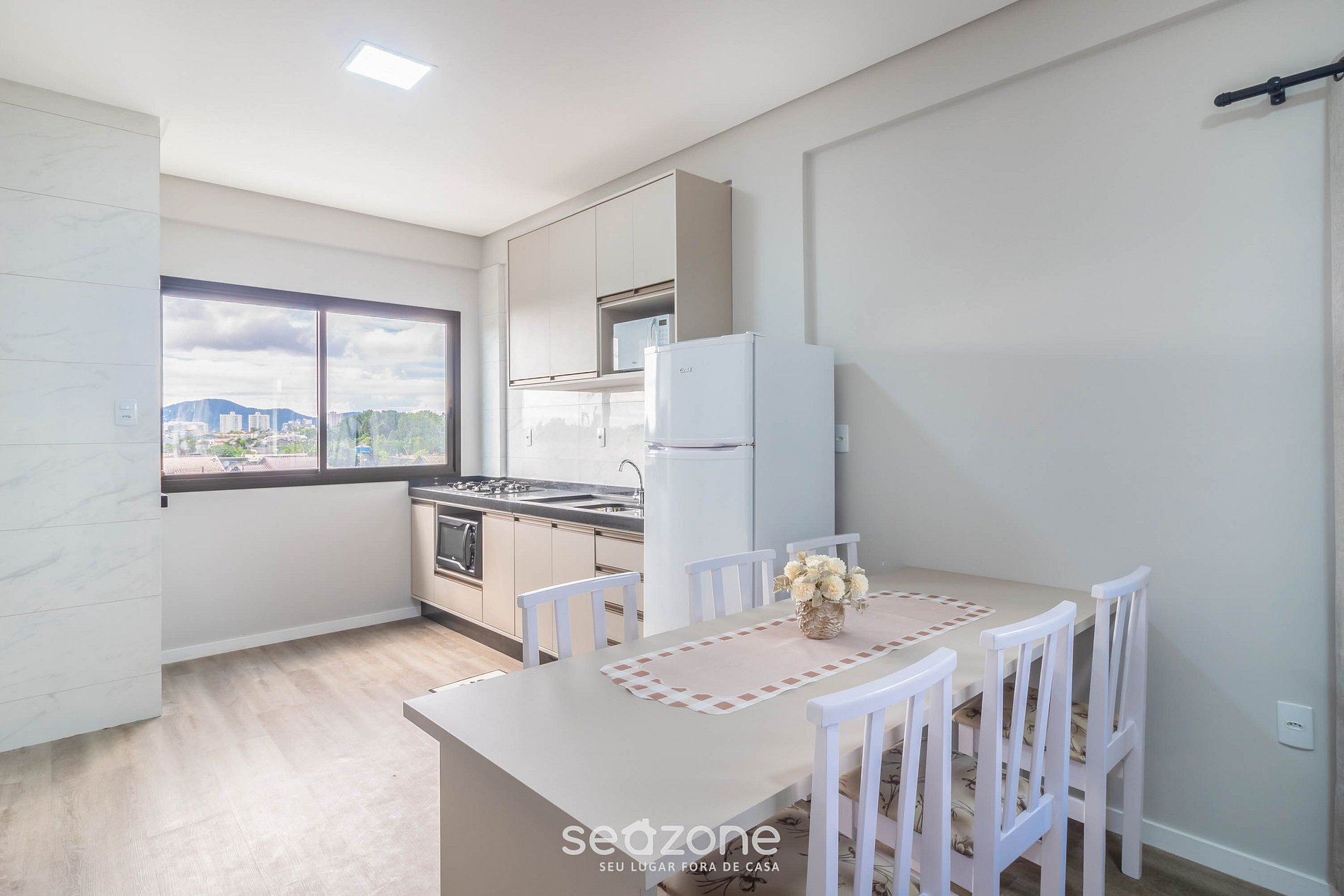 - Espaço para jantar com mesa e 4 cadeiras;