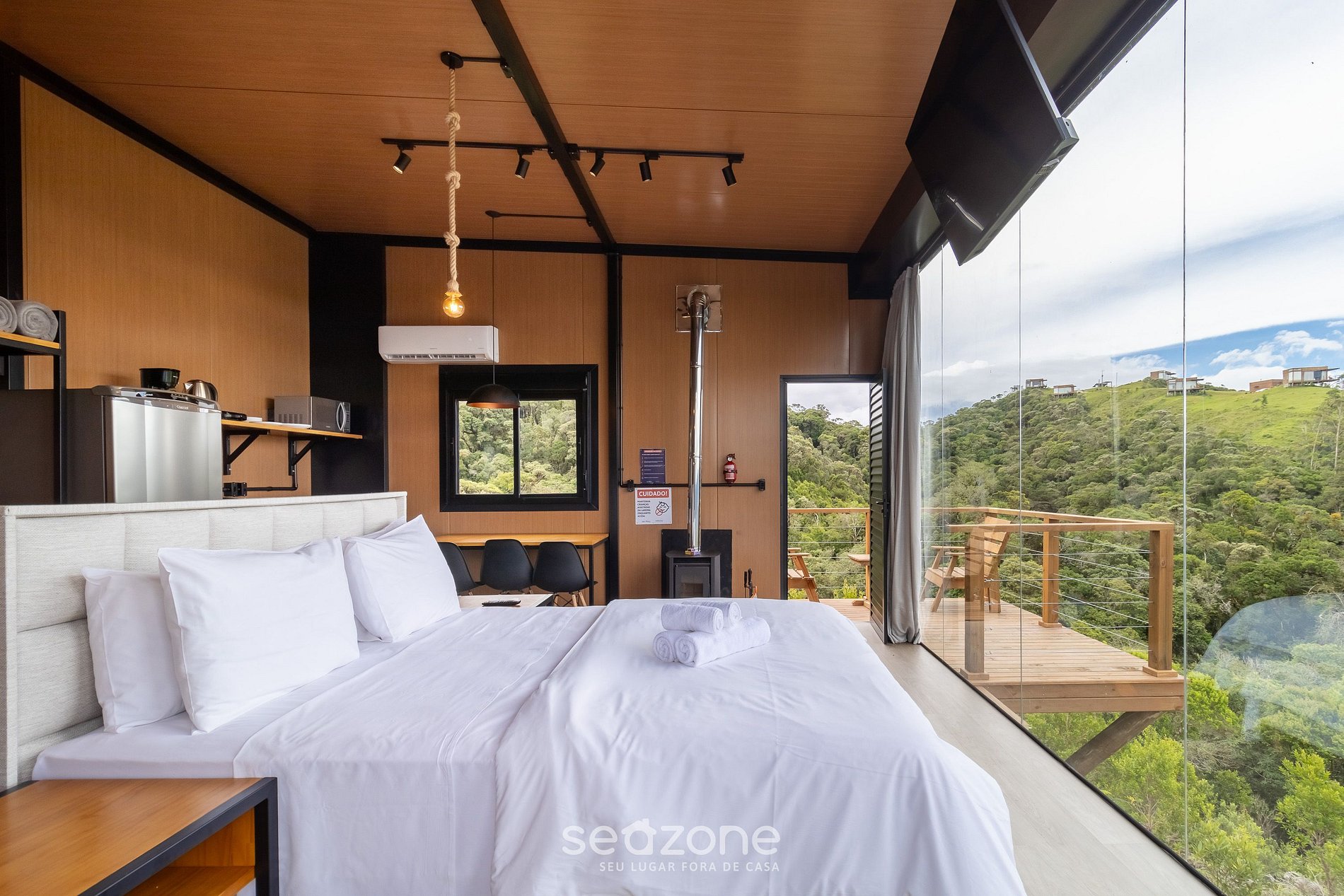 - Roupas de cama e banho de qualidade hoteleira (roupas de cama e toalhas extras são cobrados pela Seazone);
