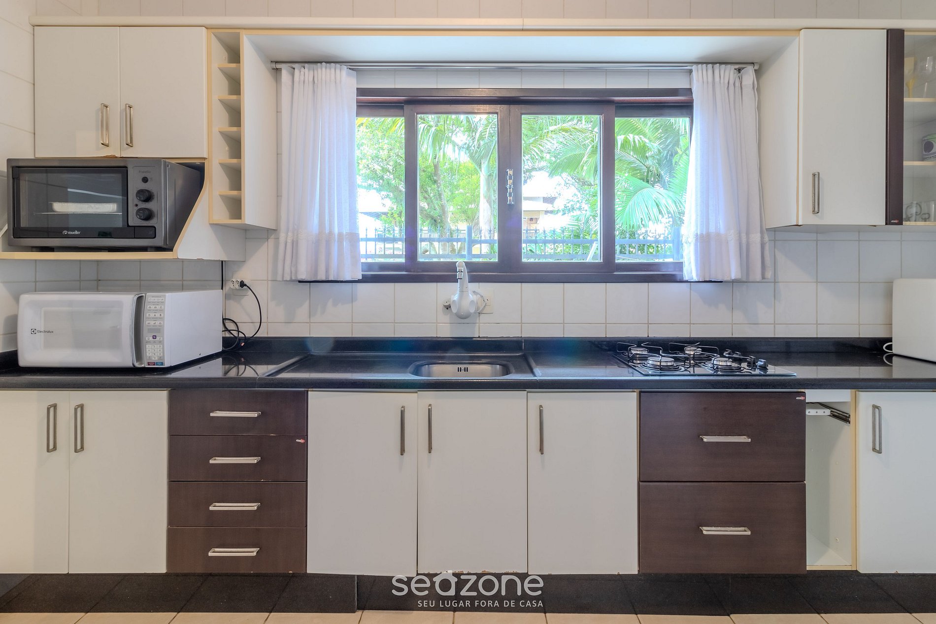 - Cozinha completa com geladeira, fogão cooktop, forno elétrico, micro-ondas, sanduicheira, cafeteira elétrica, chaleira elétrica, liquidificador, taças de vinho, panelas, louças e utensílios;