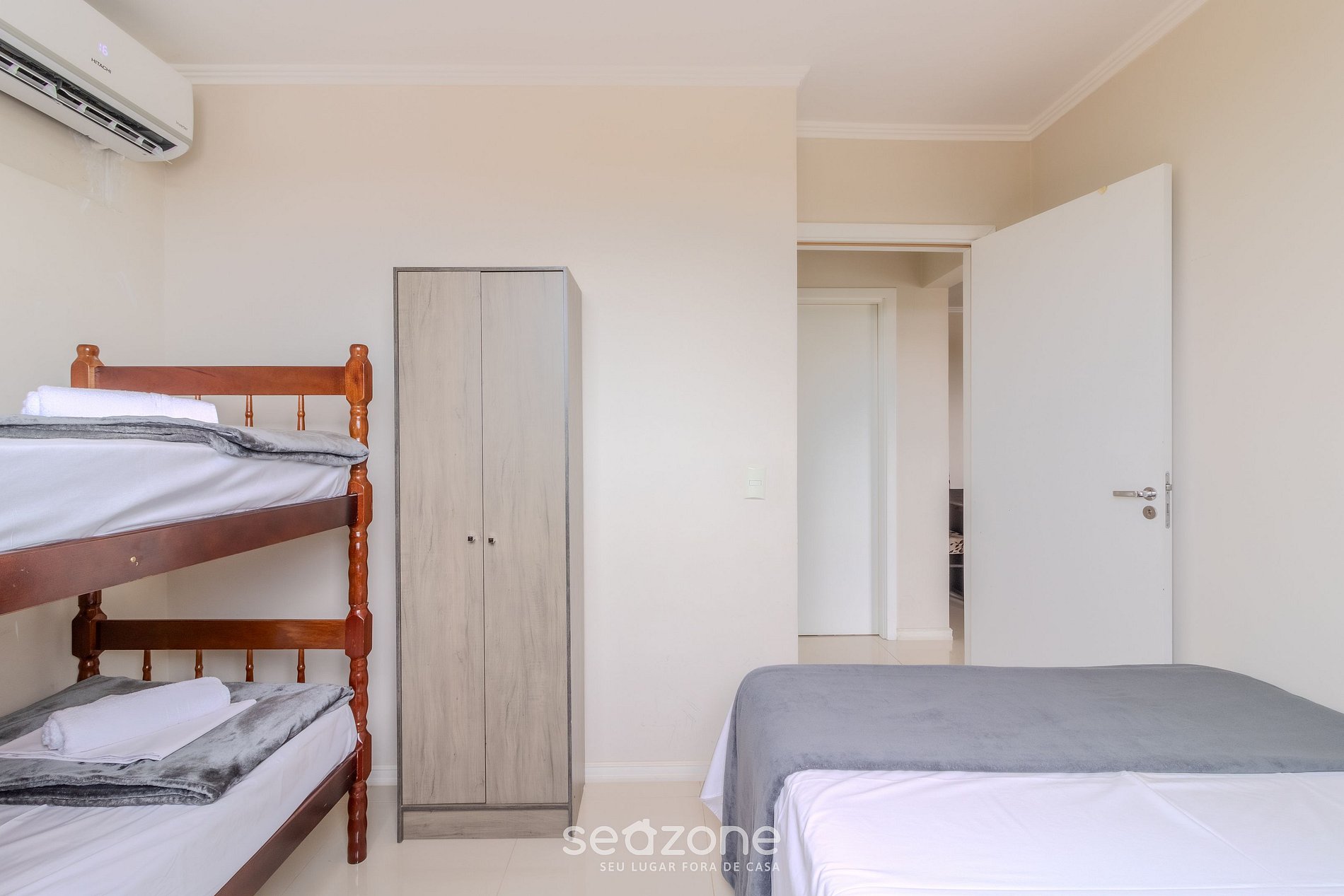- 1 Quarto com cama de casal, 1 beliche com 2 camas, armário e ar-condicionado;