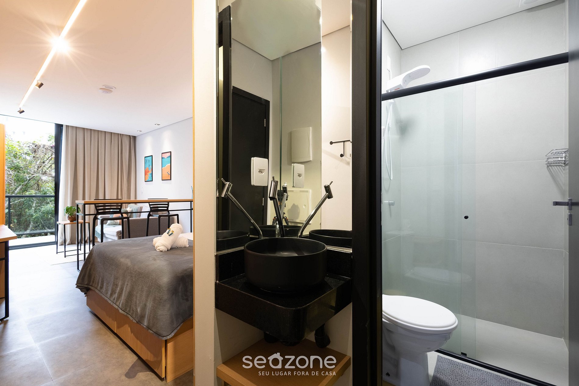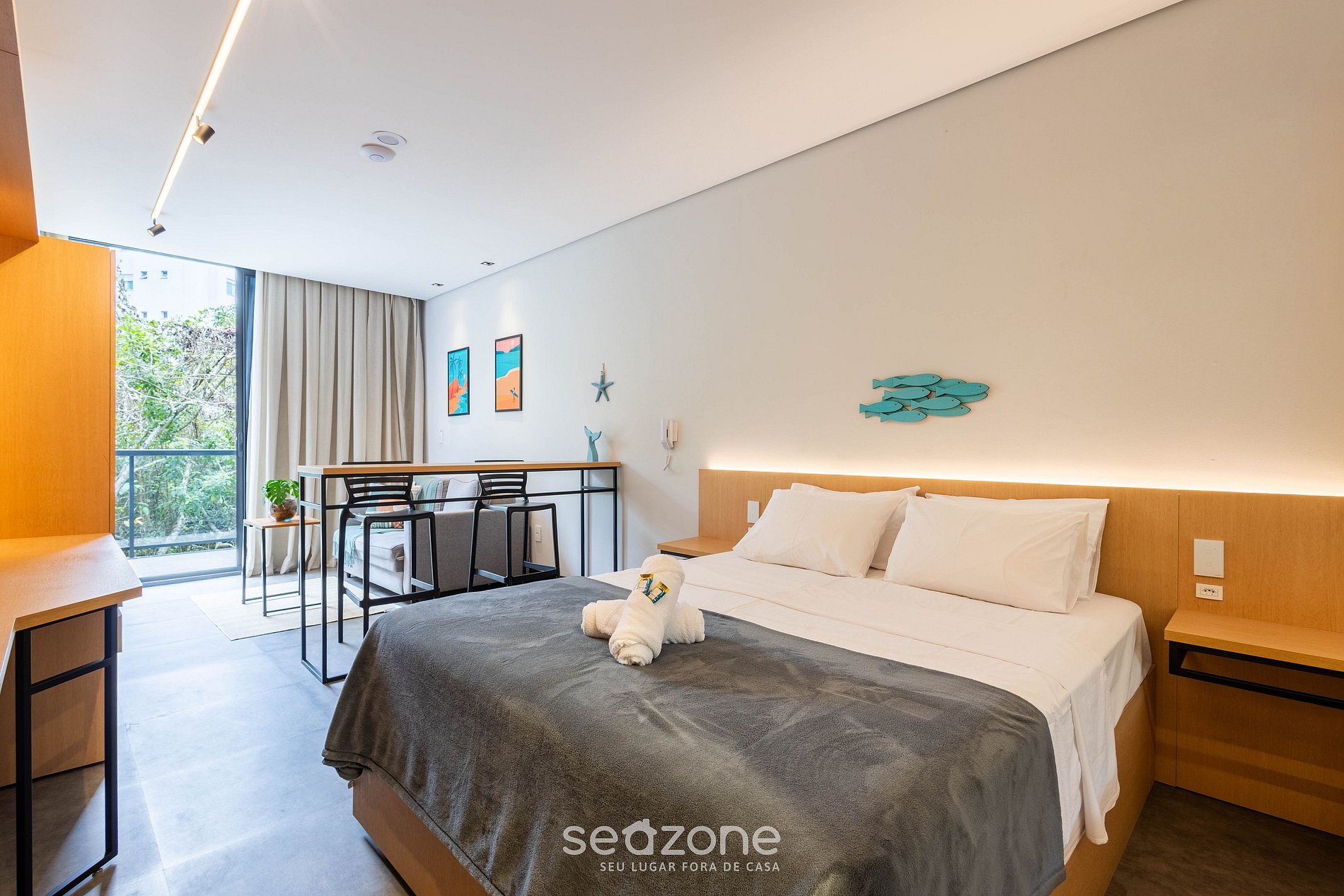 Entre o luxo e a sustentabilidade, nasce este studio próximo à Praia Brava. Energia renovável, automação por Alexa e Wi-Fi potente garantem praticidade. Acomodação com cama queen, sofá-cama, cozinha completa, e uma sacada com linda vista. Segurança reforçada com reconhecimento facial para que você só se preocupe em relaxar. Além de uma localização privilegiada com restaurantes e mercados próximos, você tem tudo ao alcance.