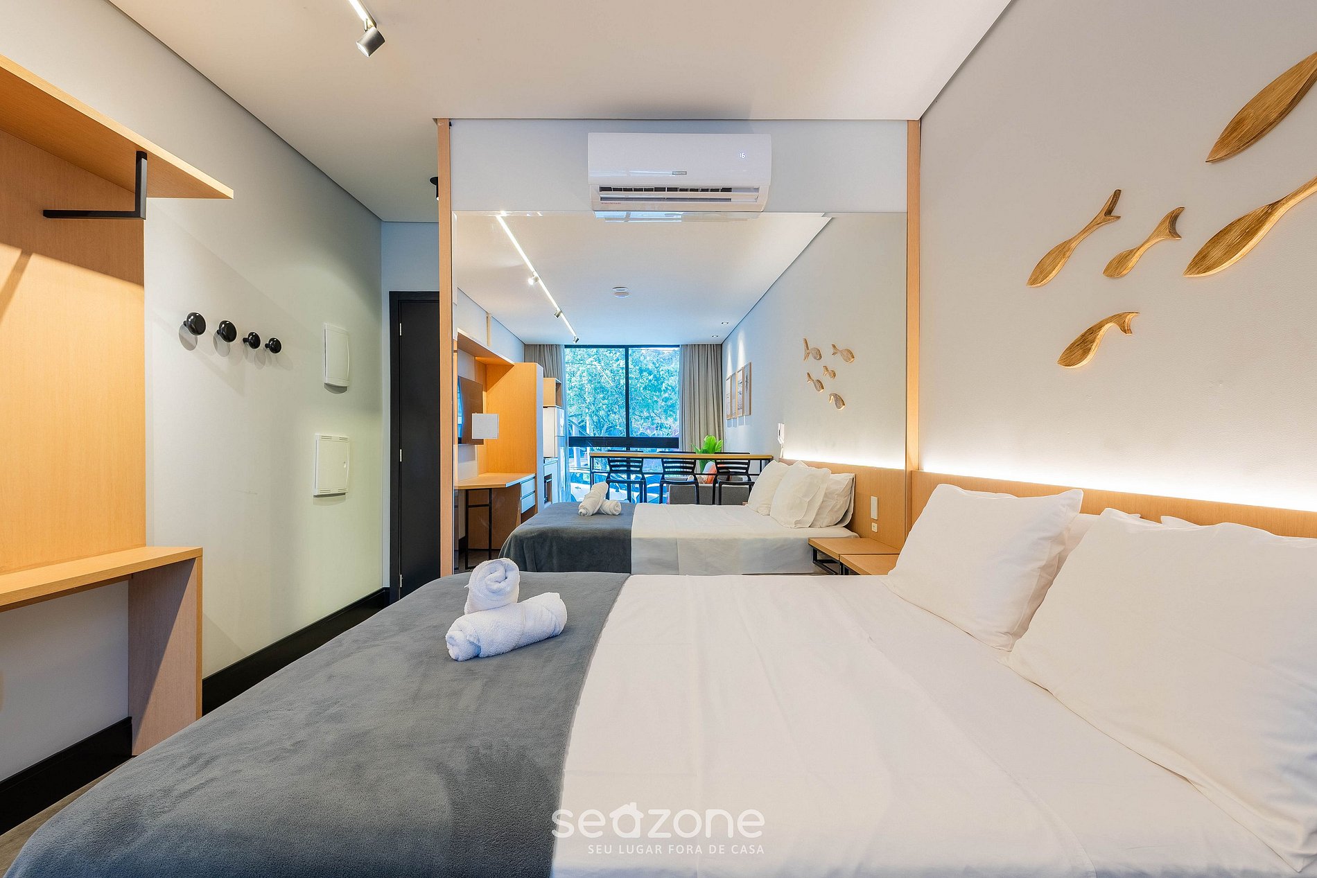 - Roupas de cama e banho de qualidade hoteleira (roupas de cama e toalhas extras são cobrados pela Seazone);