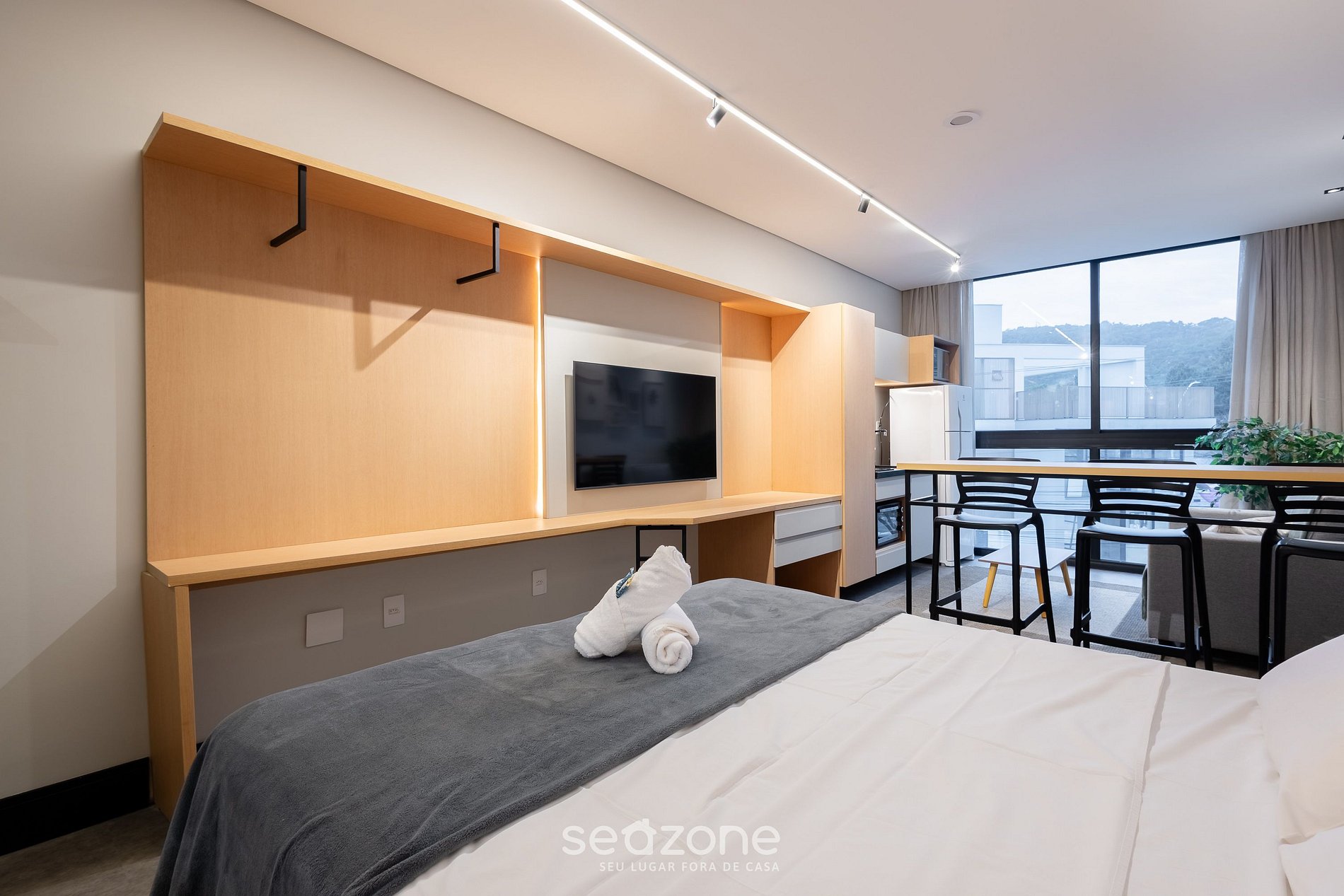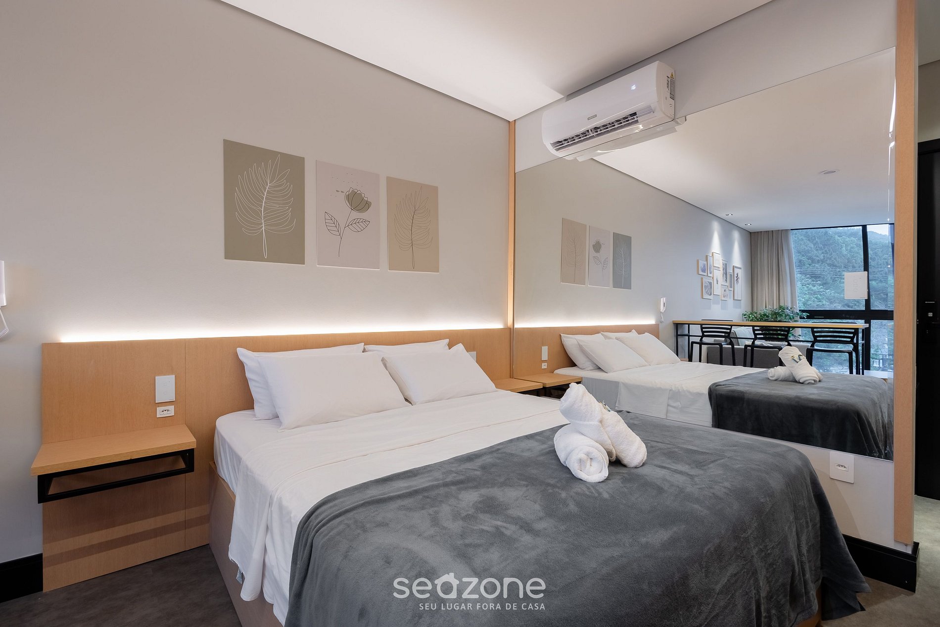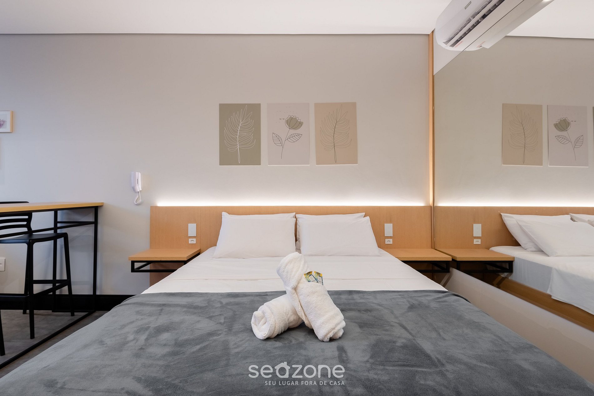 - Roupas de cama e banho de qualidade hoteleira (roupas de cama e toalhas extras são cobrados pela Seazone);