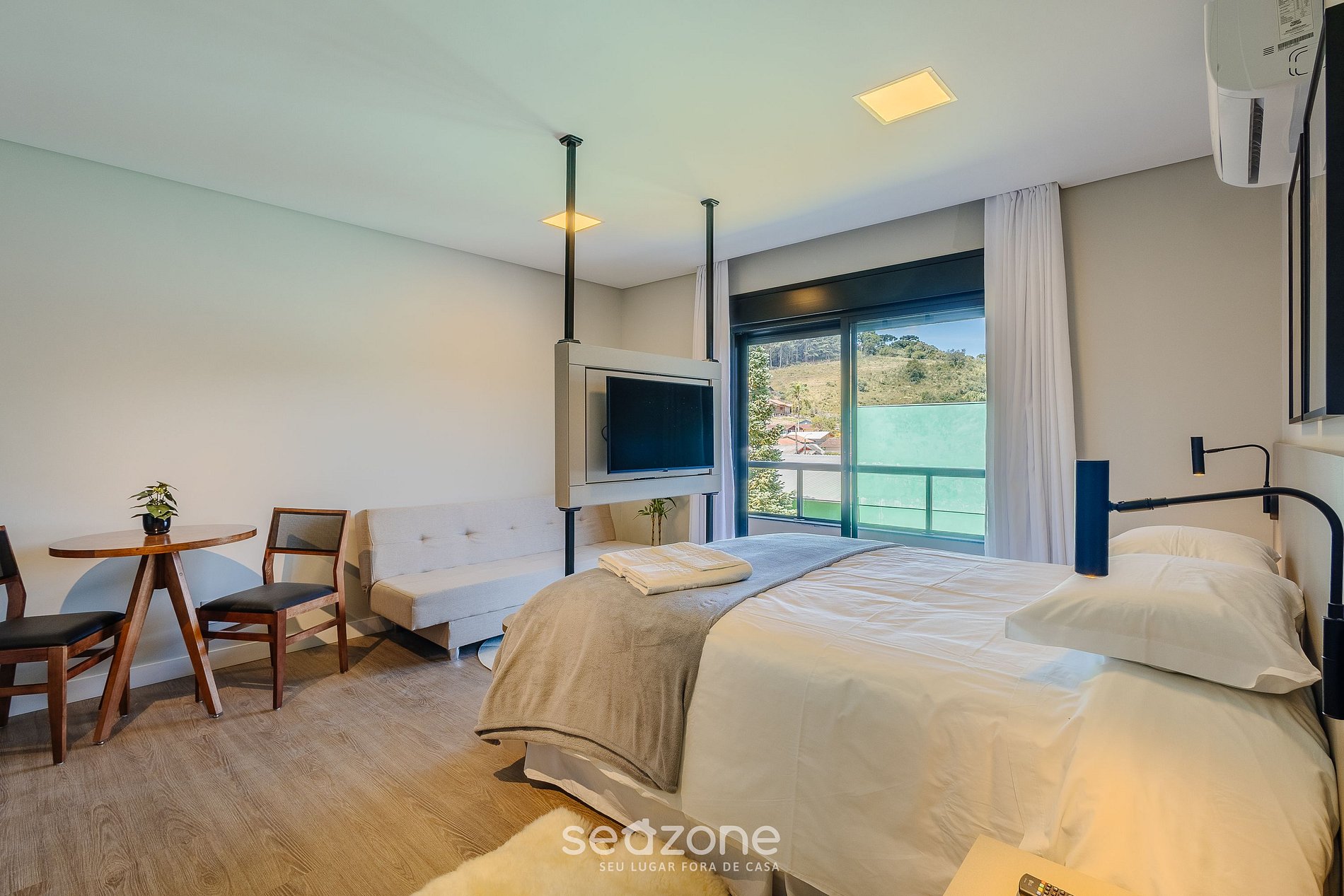 - Roupas de cama e banho de qualidade hoteleira (roupas de cama e toalhas extras são cobrados pela Seazone);
