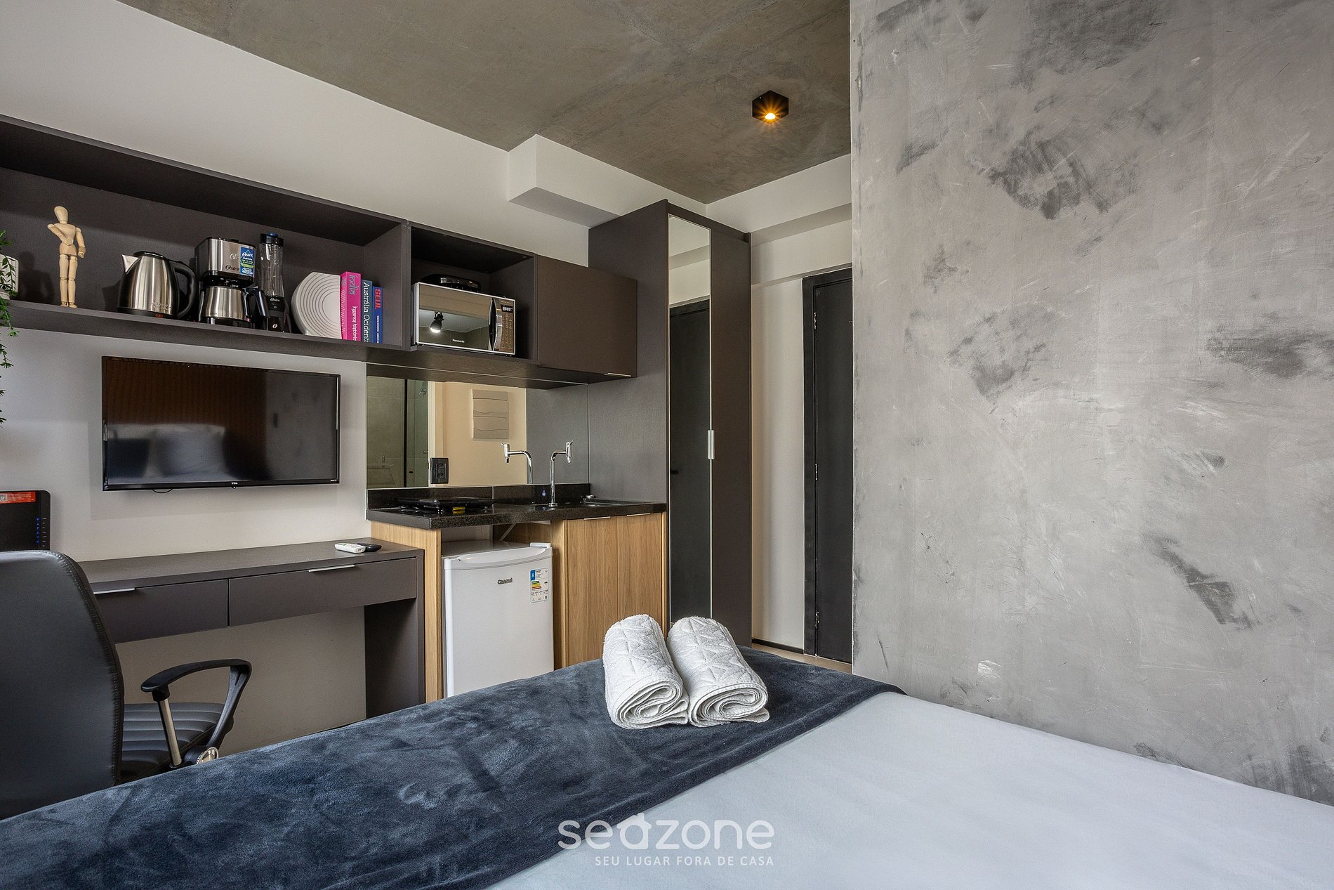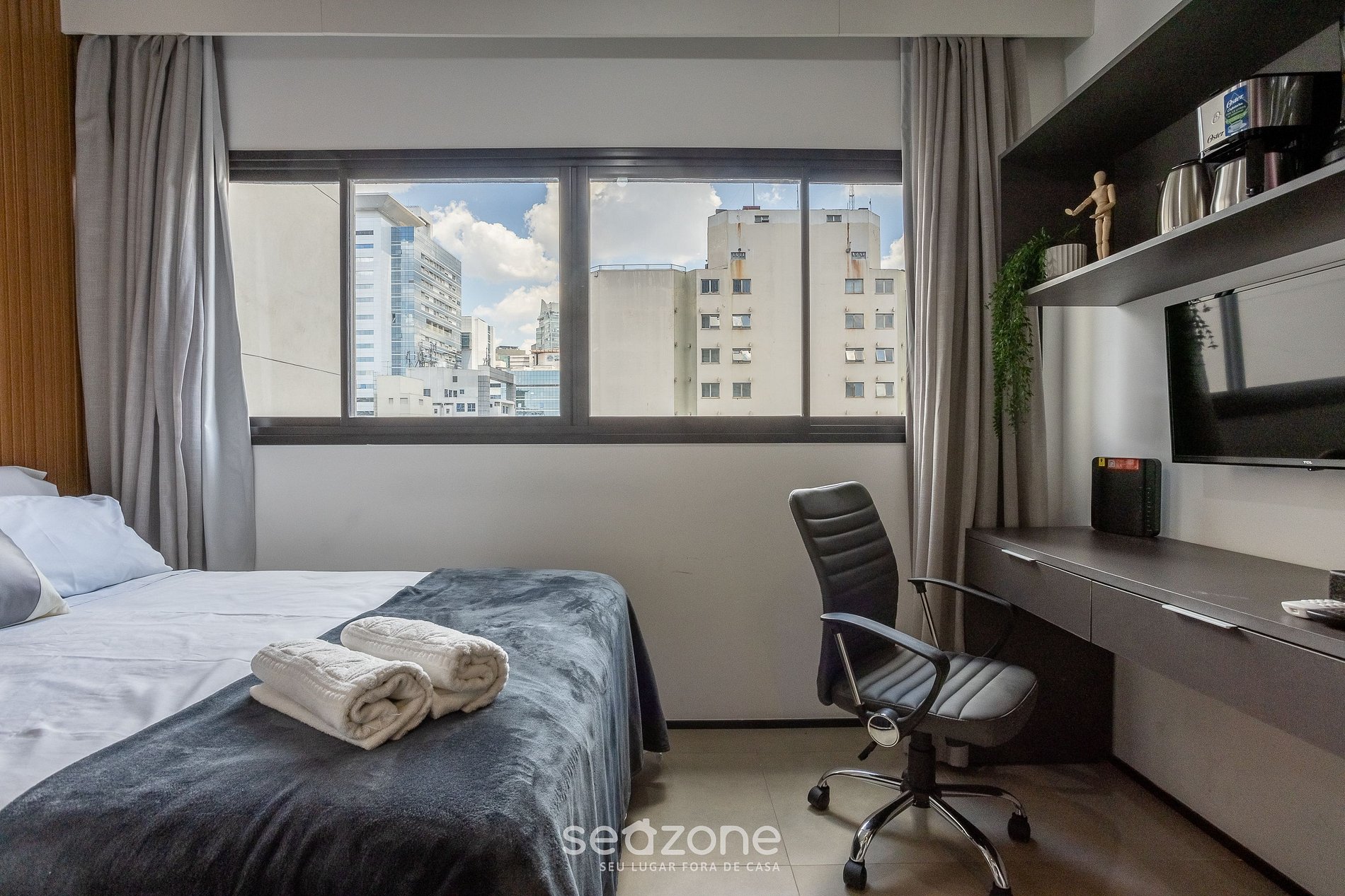 - Roupas de cama e banho de qualidade hoteleira (roupas de cama e toalhas extras são cobrados pela Seazone);