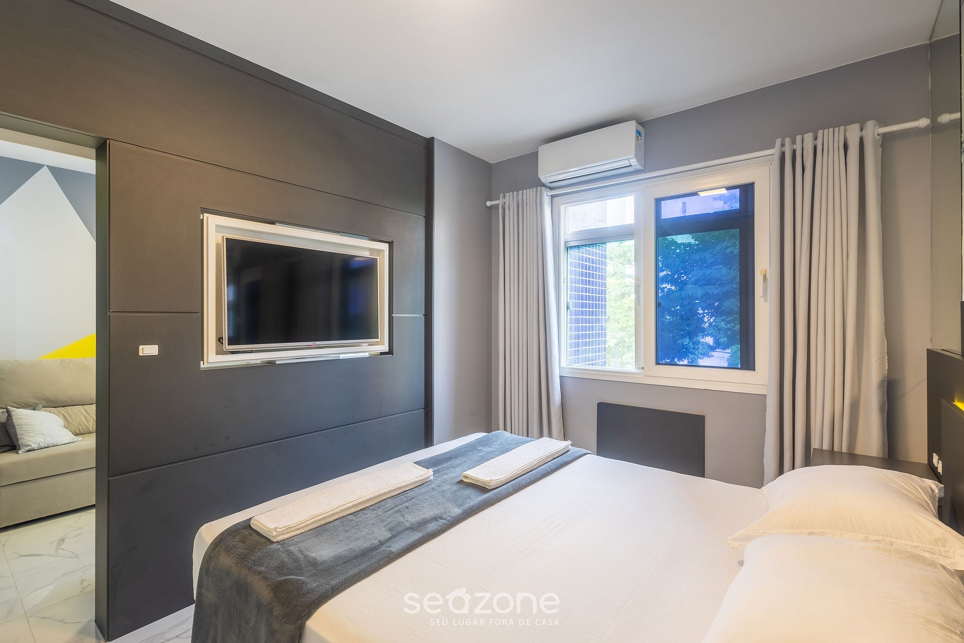 - Roupas de cama e banho de qualidade hoteleira (roupas de cama e toalhas extras são cobrados pela Seazone);