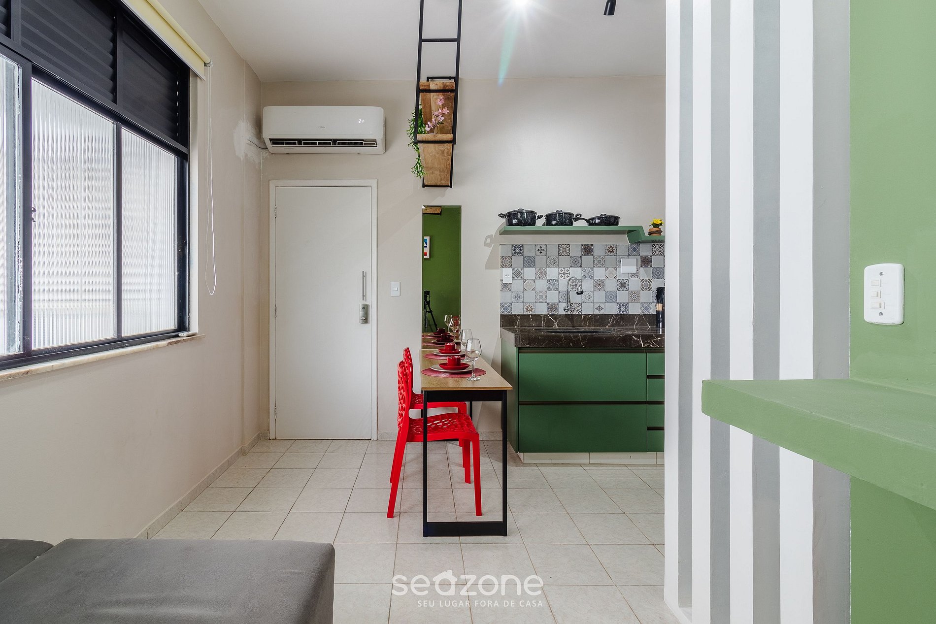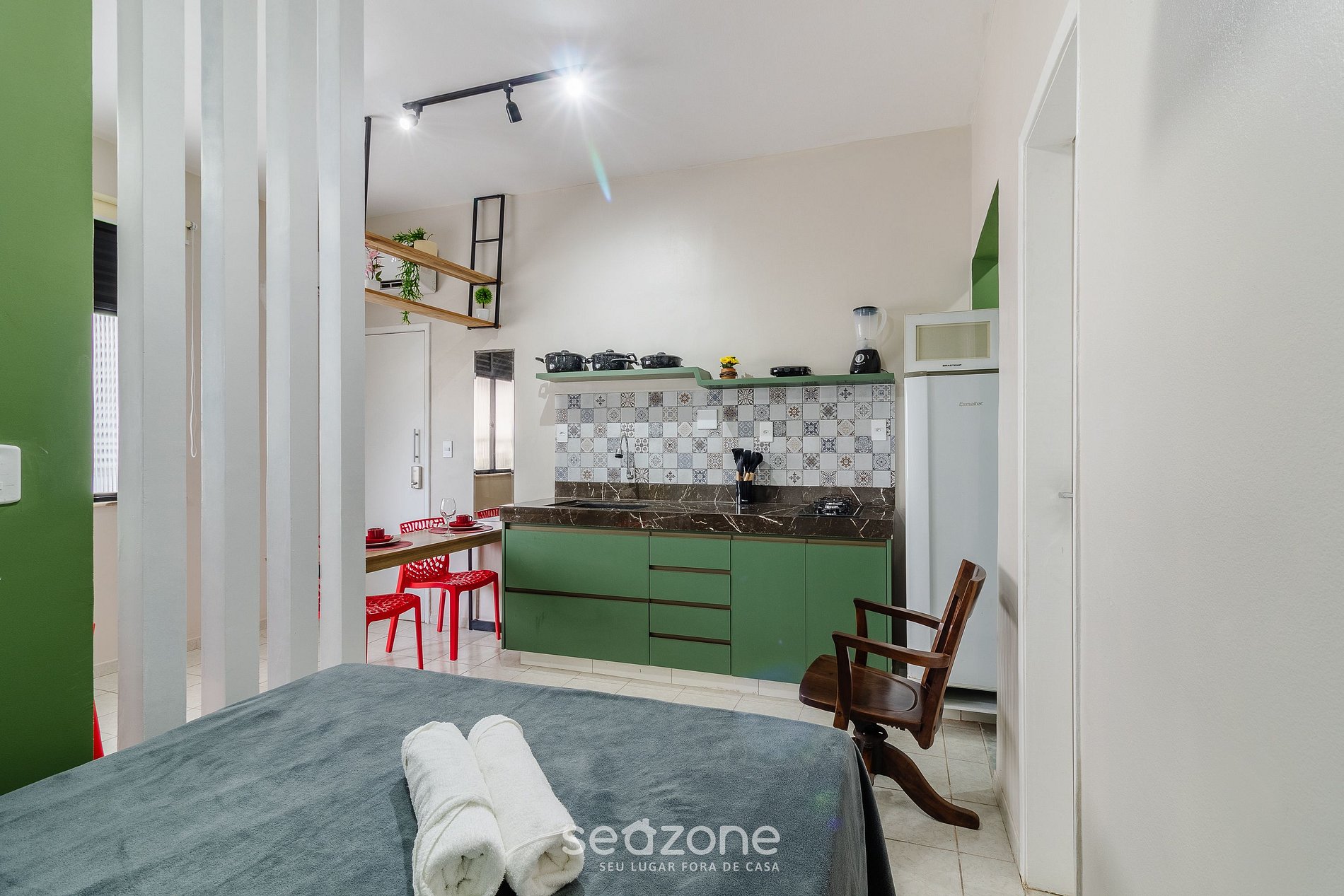 Studio completo no Centro de Salvador, perto da Praça Castro Alves, Pelourinho e Mercado Modelo. Conta com cama de casal, sofá-cama, cozinha equipada, ar-condicionado e Wi-Fi. Ideal para quem busca conforto, praticidade e fácil acesso aos principais pontos turísticos da cidade.
