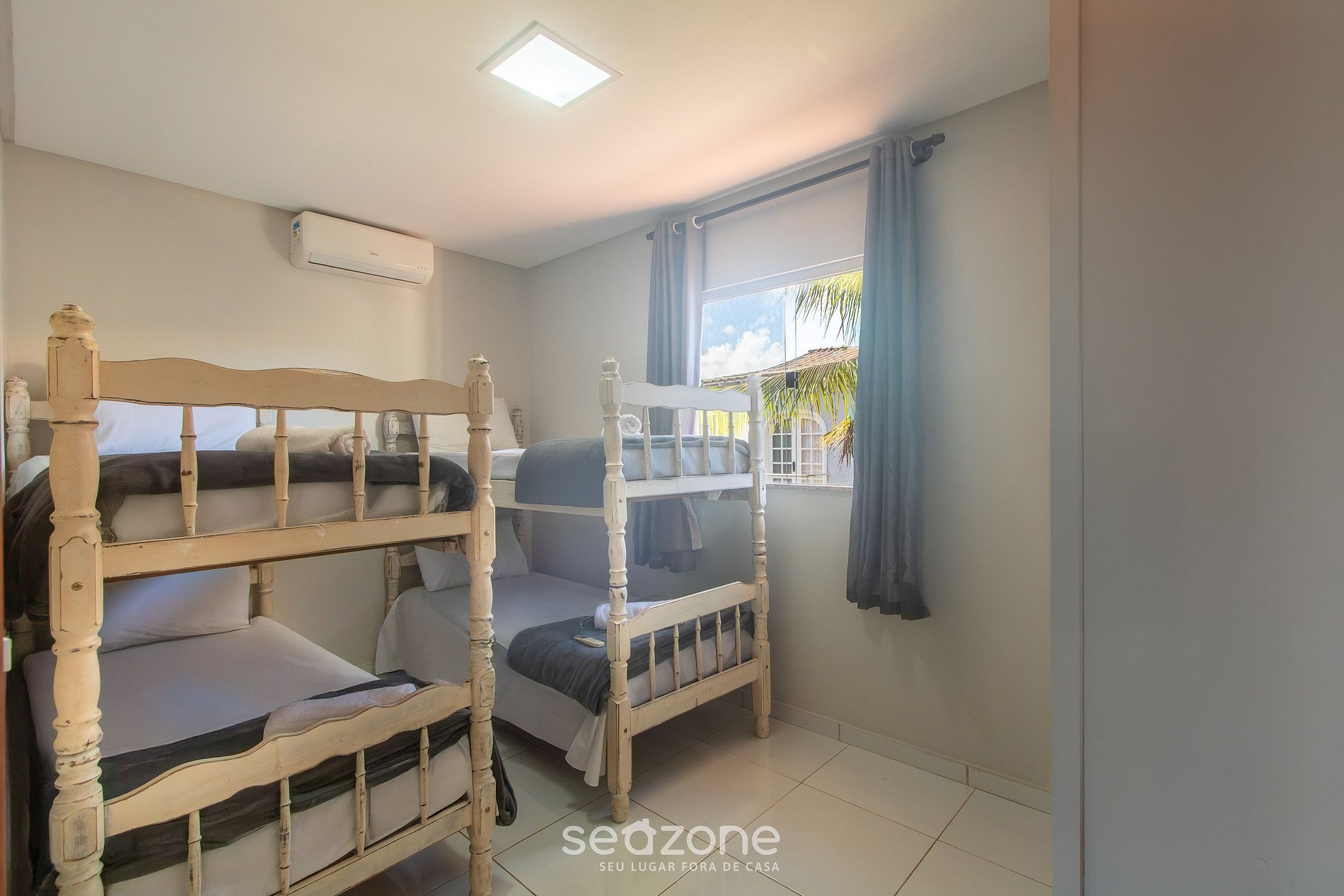 - 1 Quarto com 2 beliches cada um com 2 camas de solteiro (4 camas), armário e ar-condicionado;