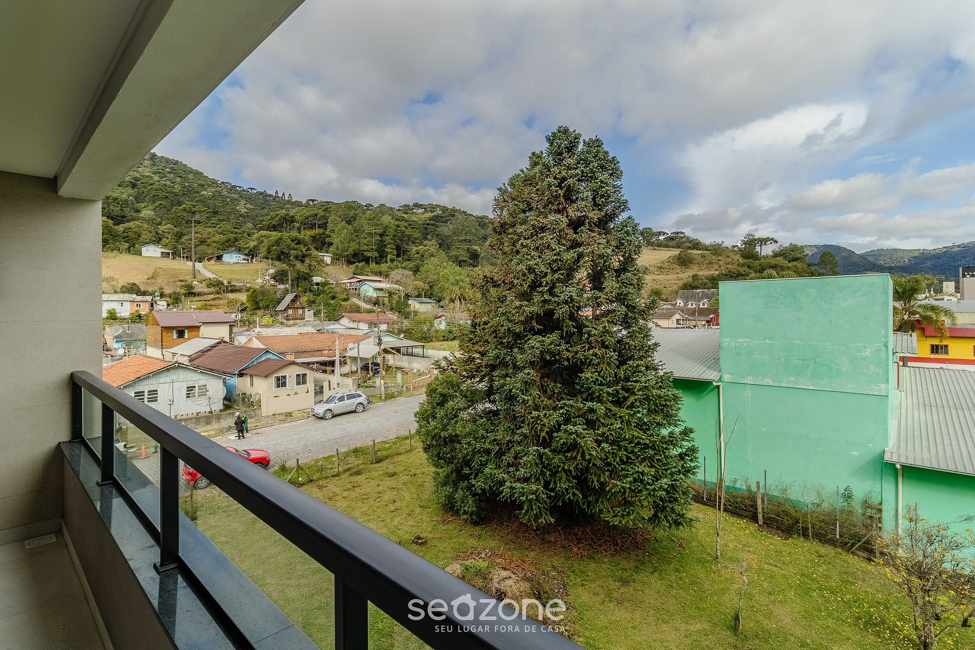- Varanda com vista para a cidade e para a montanha;