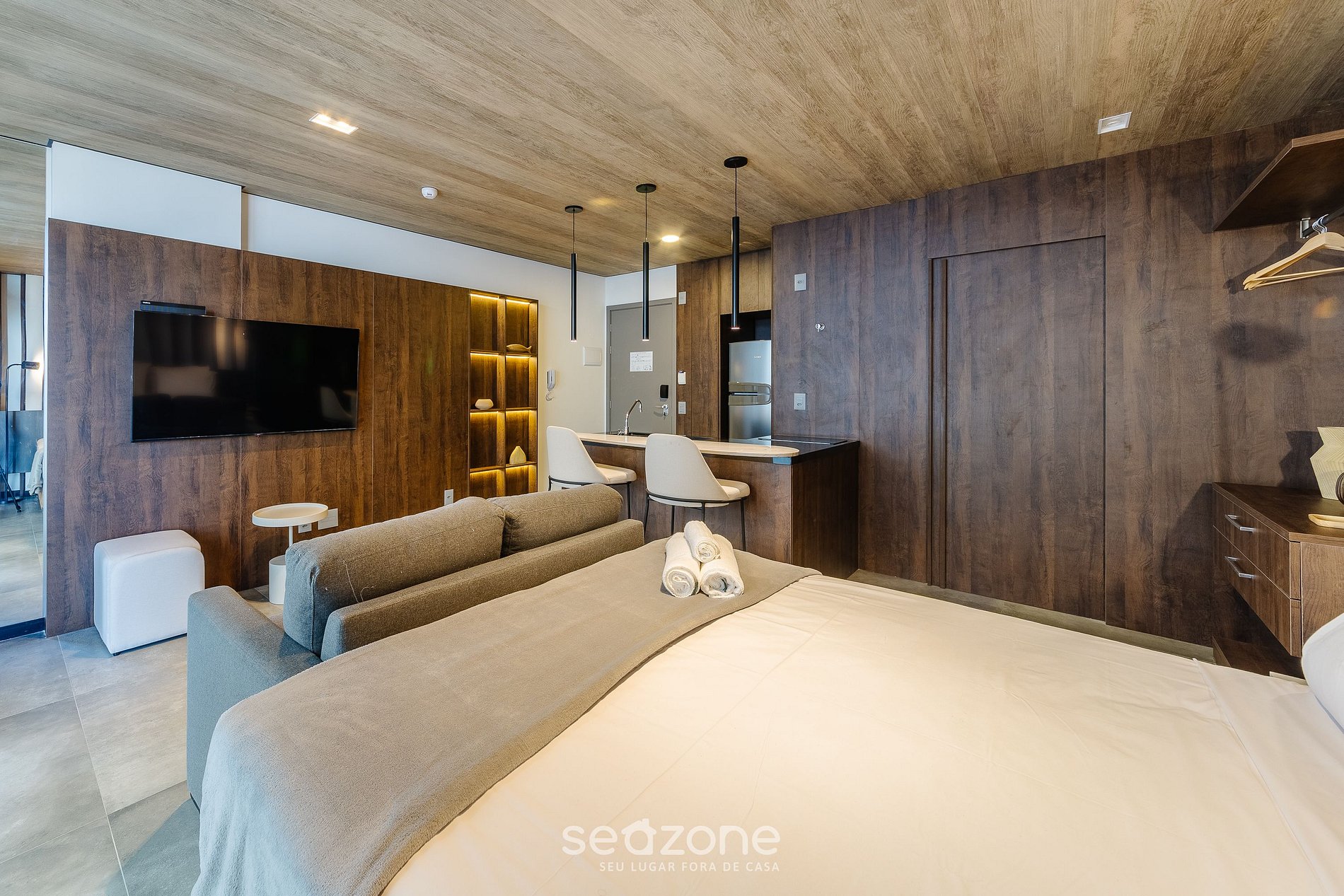 - Roupas de cama e banho de qualidade hoteleira (roupas de cama e toalhas extras são cobrados pela Seazone);
