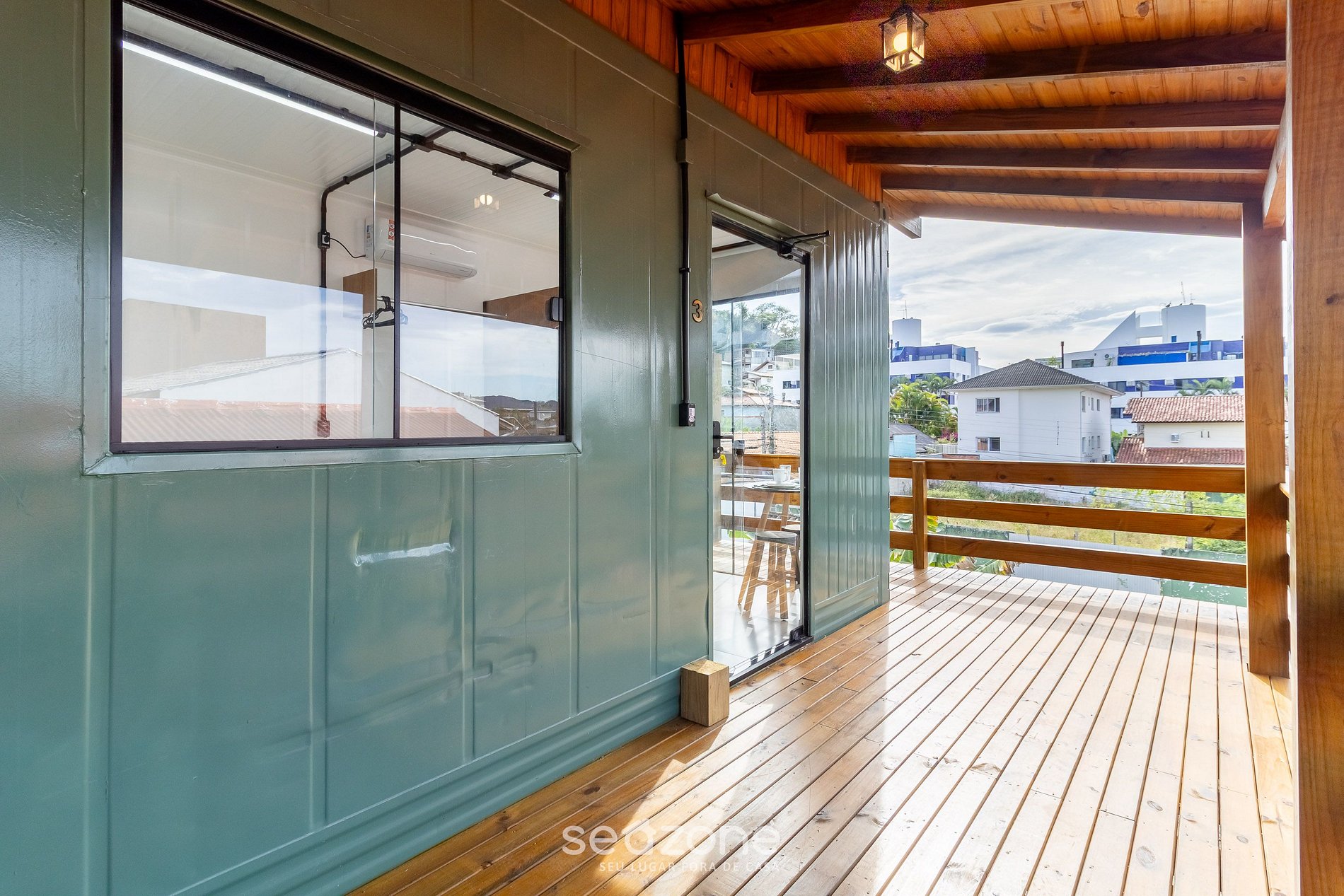 - Varanda agradável com vista para a cidade e móveis externos;