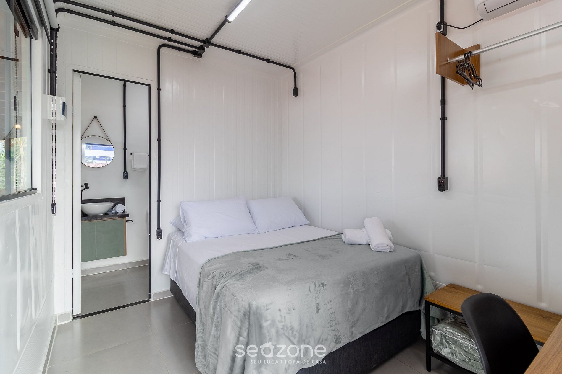 - 1 cama de casal, arara para roupas, Smart Tv e ar-condicionado;