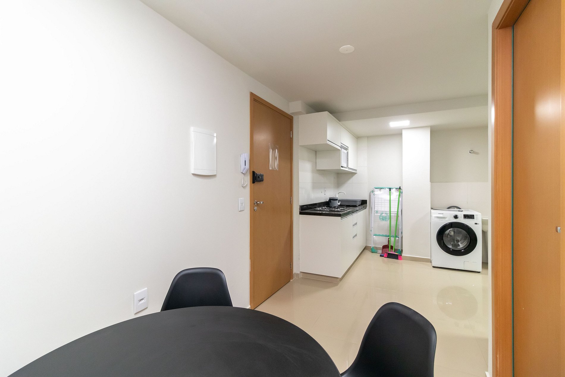 Nosso prédio é exclusivo por temporada, possui 6 unidades todas mobiliadas, possui câmeras de segurança, acesso portaria remota e escada. São dois andares, o primeiro com duas unidades dois quartos e o segundo com 4 unidades 1 quarto. Na porta do prédio temos vagas de garagem, porém não são exclusivas do prédio.