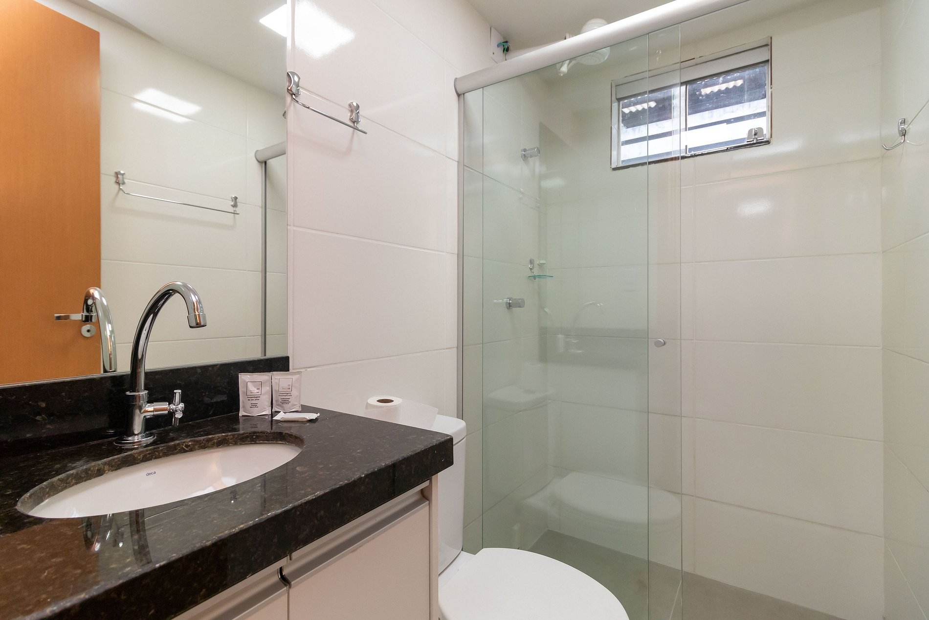 - 1 Quarto com cama de casal, armário, cortinas blackout e ar-condicionado;