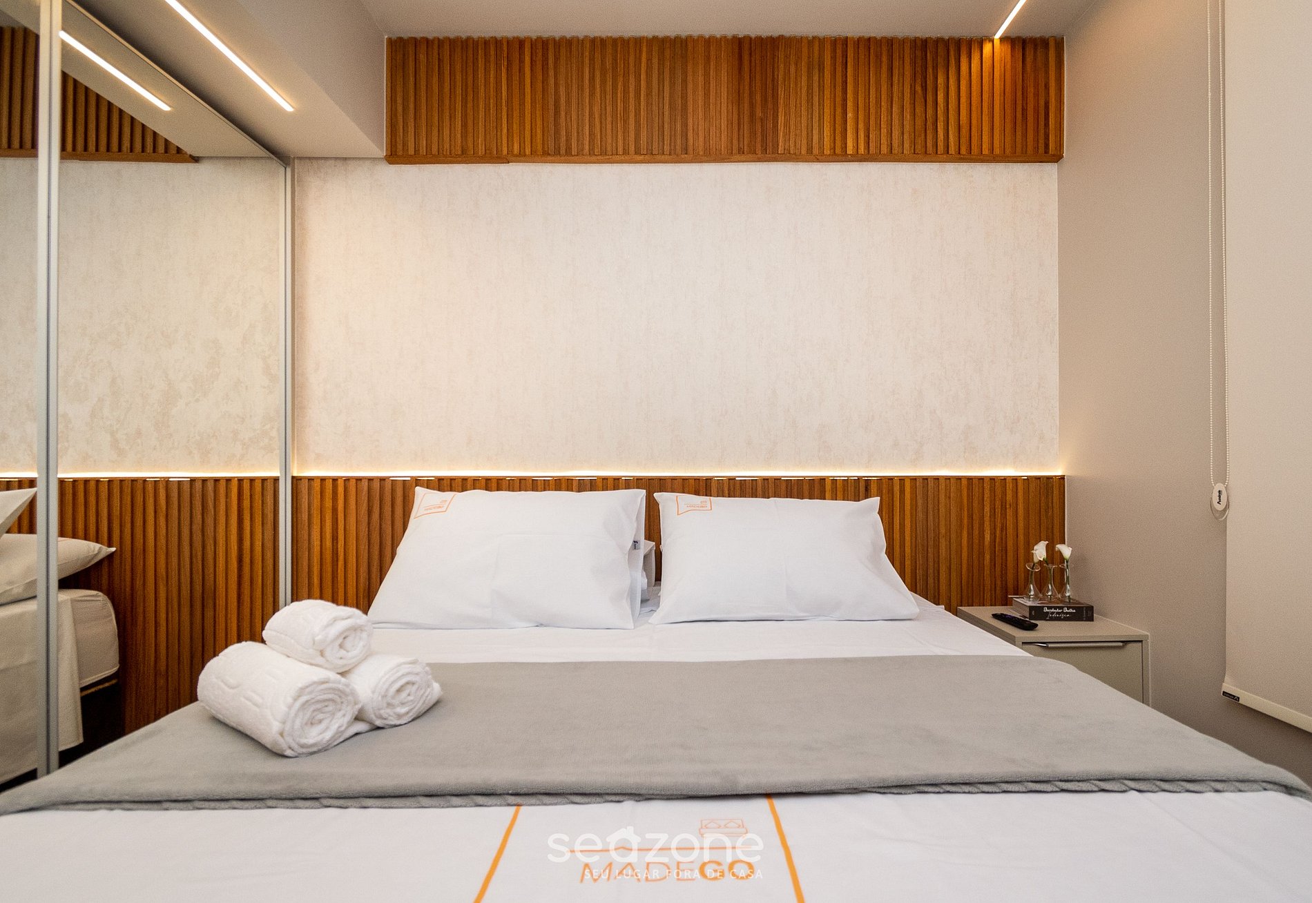Roupa de cama e toalhas de alto padrão para garantir o máximo de conforto.