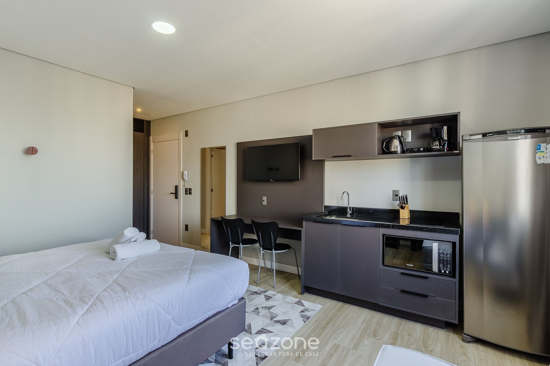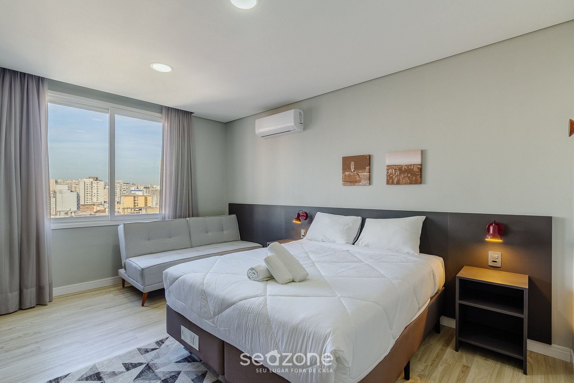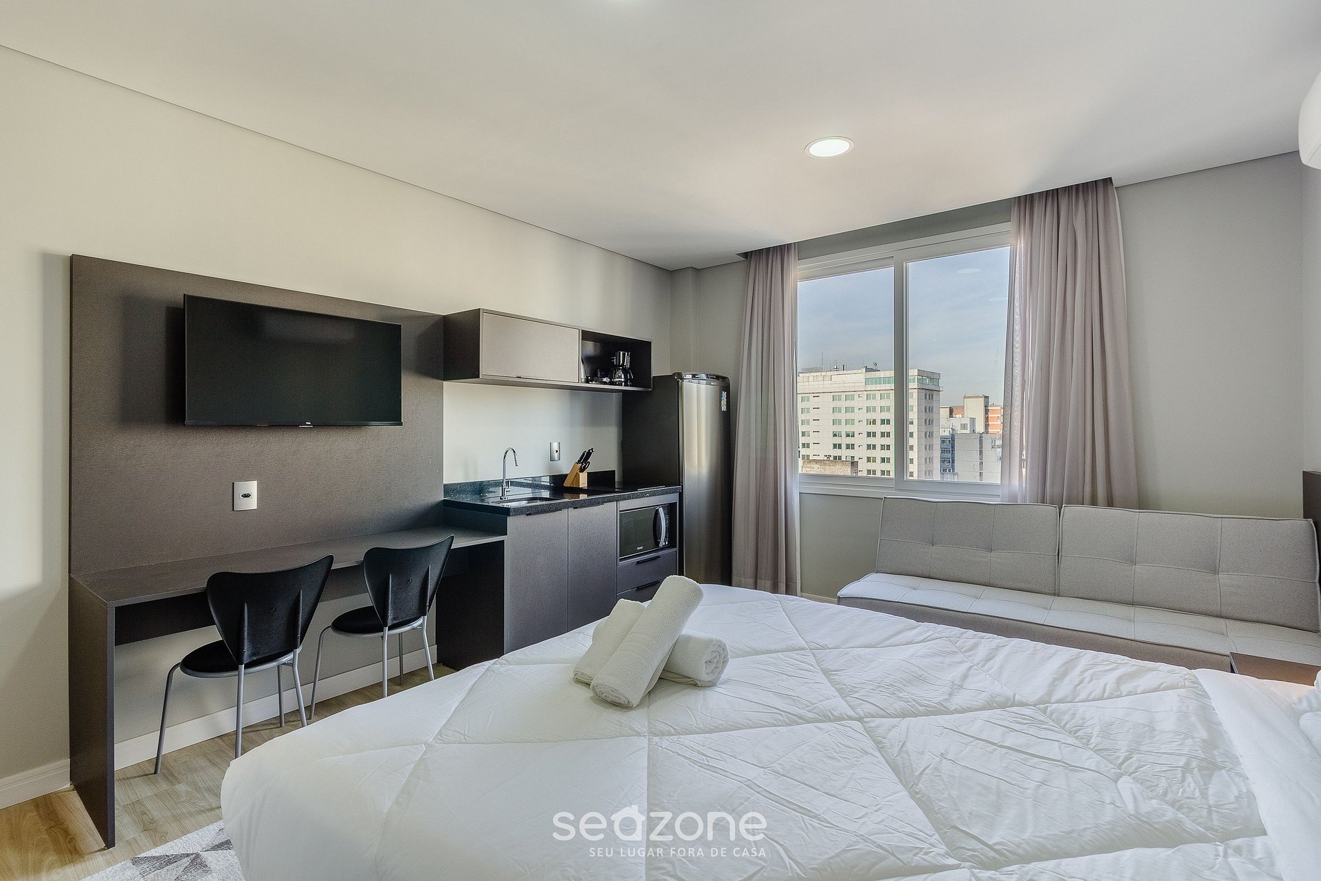 - Roupas de cama e banho de qualidade hoteleira (roupas de cama e toalhas extras são cobrados pela Seazone);