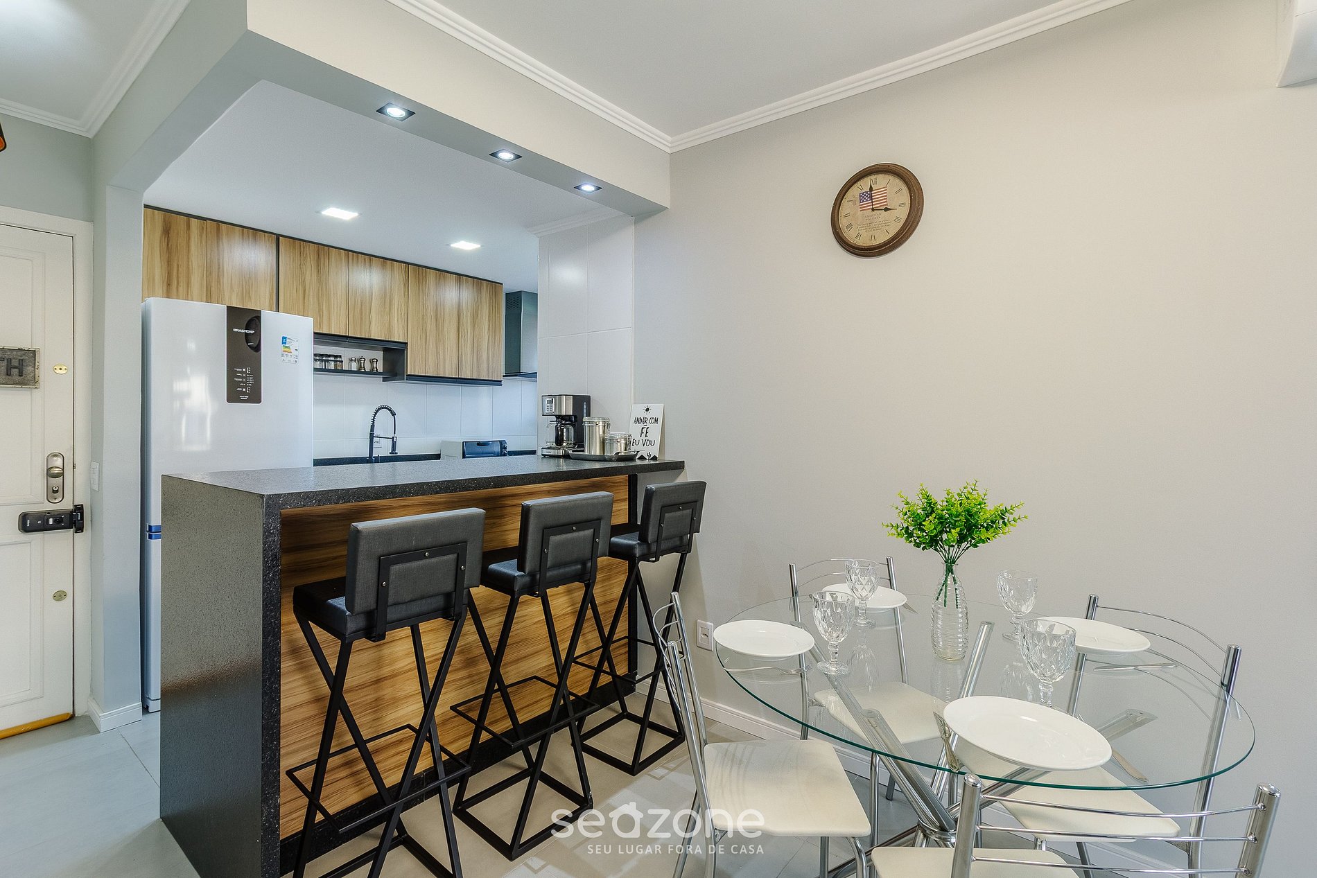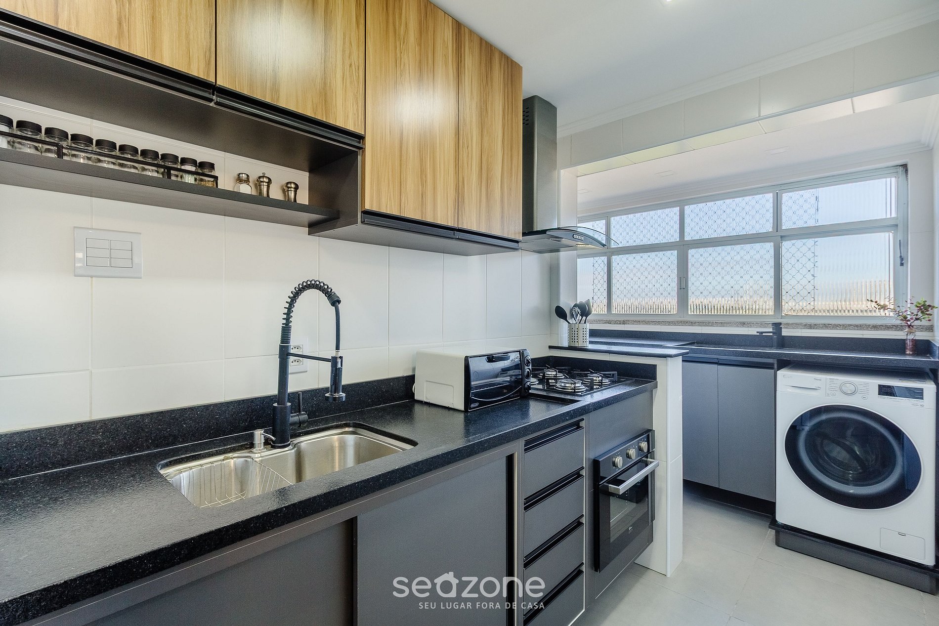 - Cozinha completa com geladeira, fogão cooktop, forno elétrico, micro-ondas, Airfryer, cafeteira elétrica, chaleira elétrica, liquidificador, taças de vinho, panelas, louças e utensílios;