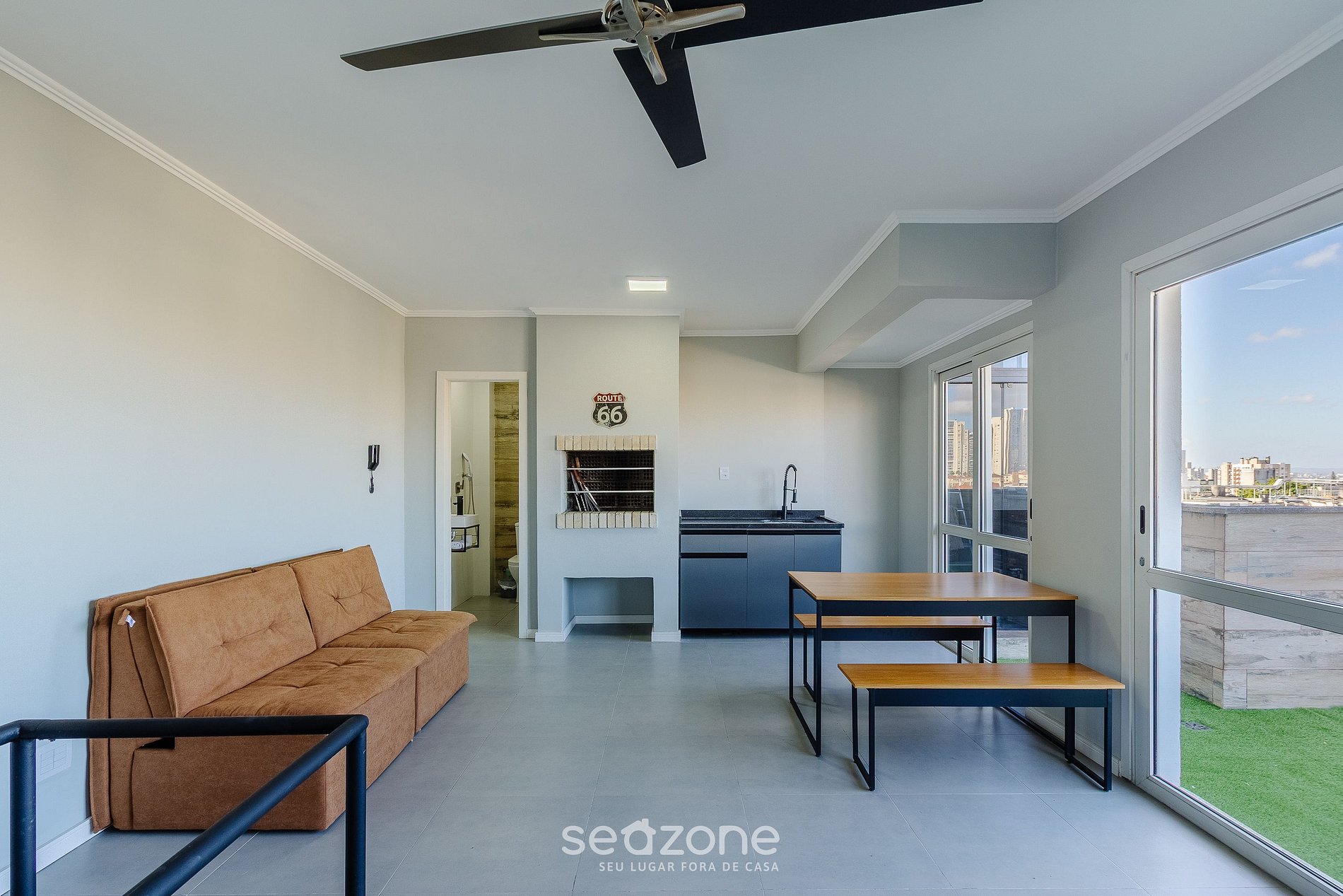 Apartamento completo com 2 quartos climatizados, sala com lareira, smart TV e ar-condicionado, cozinha equipada e Wi-Fi. A cobertura é um diferencial, com espaço gourmet, churrasqueira e terraço com vista panorâmica para a cidade. Localização privilegiada no Passo da Areia, perto de shopping, parques, hospitais, consulado dos EUA e transporte.