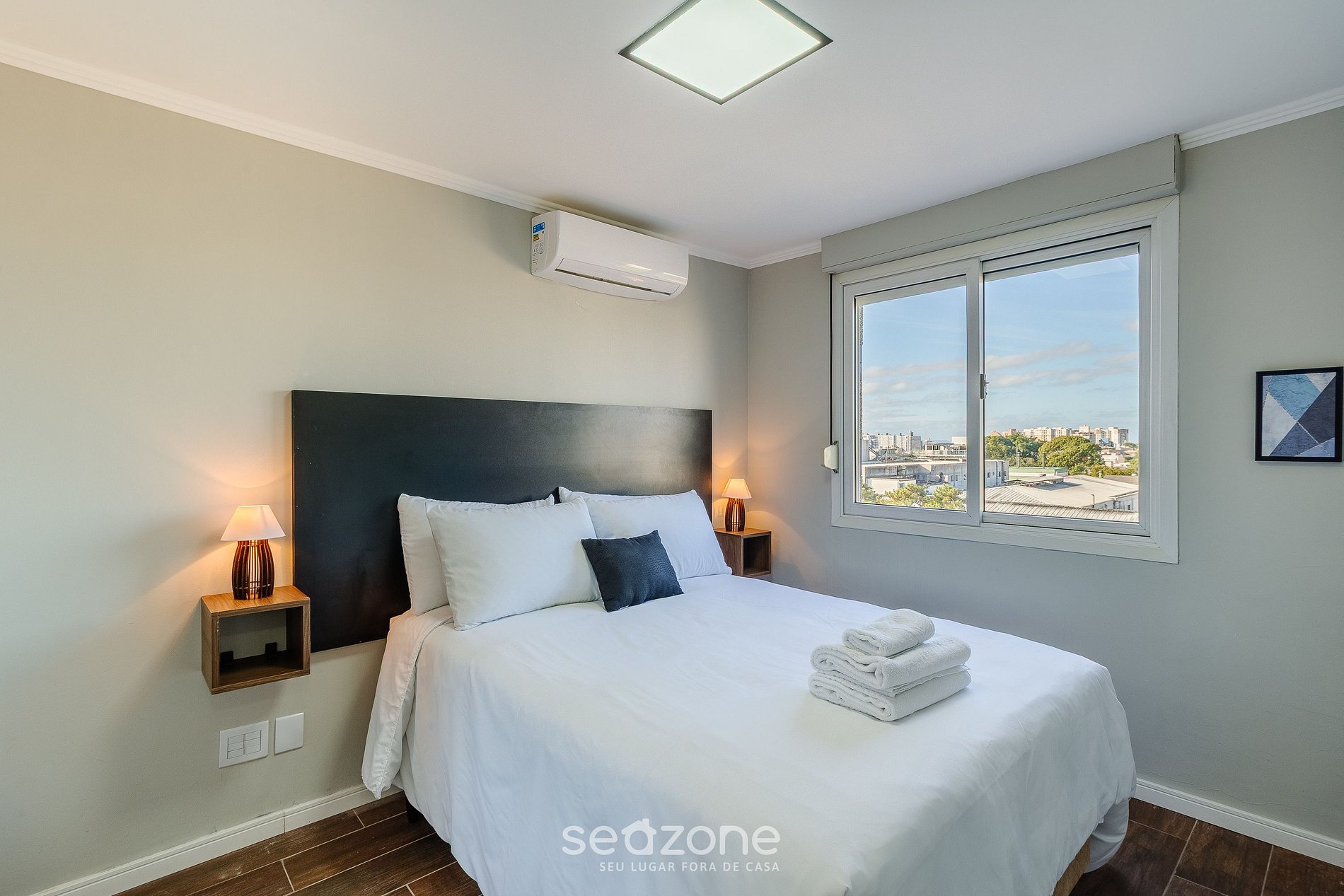 Apartamento completo com 2 quartos climatizados, sala com lareira, smart TV e ar-condicionado, cozinha equipada e Wi-Fi. A cobertura é um diferencial, com espaço gourmet, churrasqueira e terraço com vista panorâmica para a cidade. Localização privilegiada no Passo da Areia, perto de shopping, parques, hospitais, consulado dos EUA e transporte.