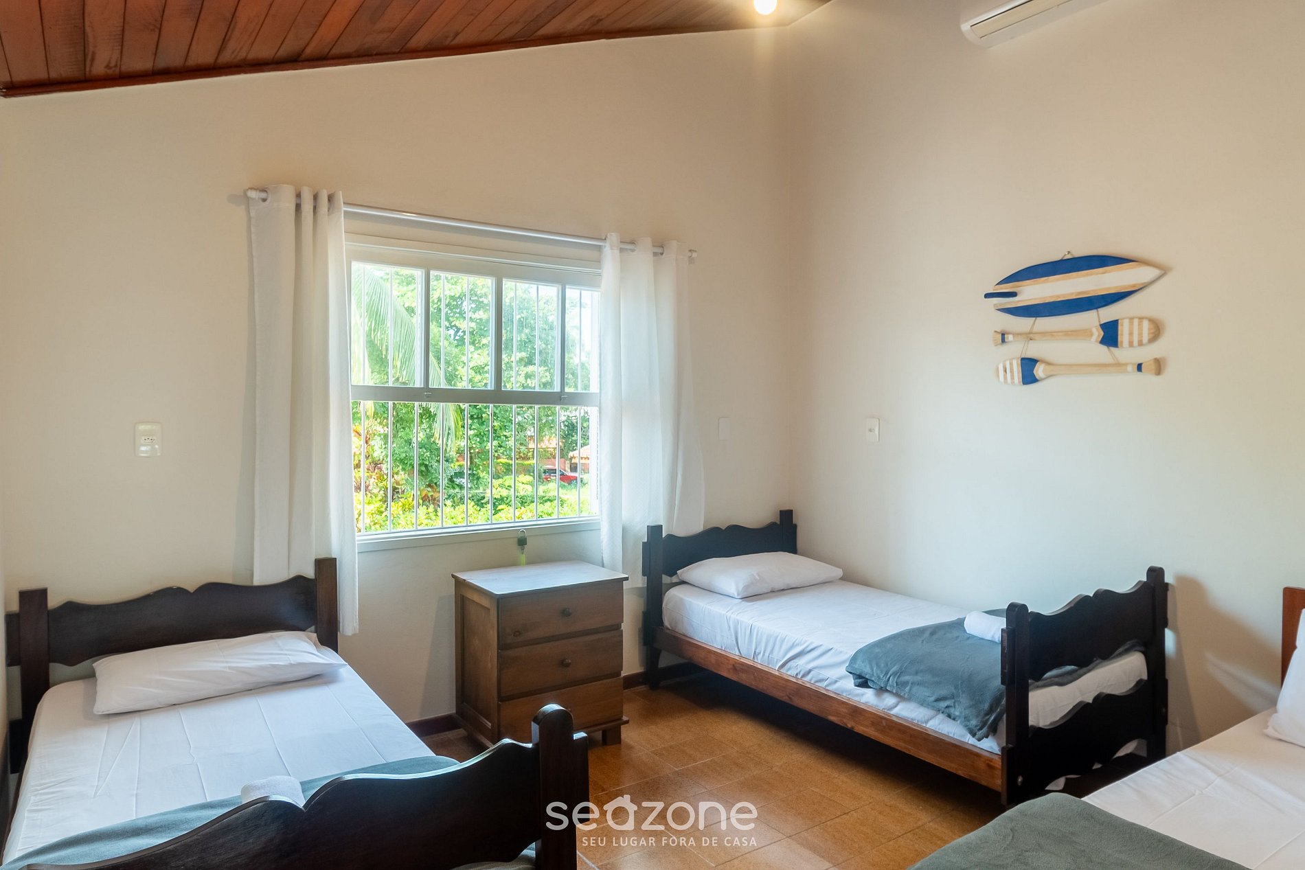 - 1 Quarto com 3 camas de solteiro, cômoda, ventilador de teto e ar-condicionado;