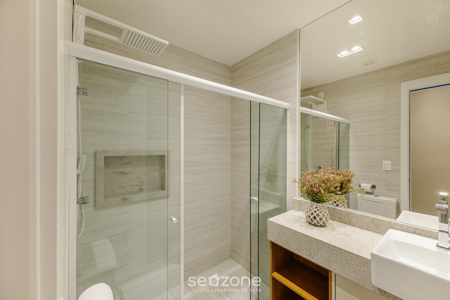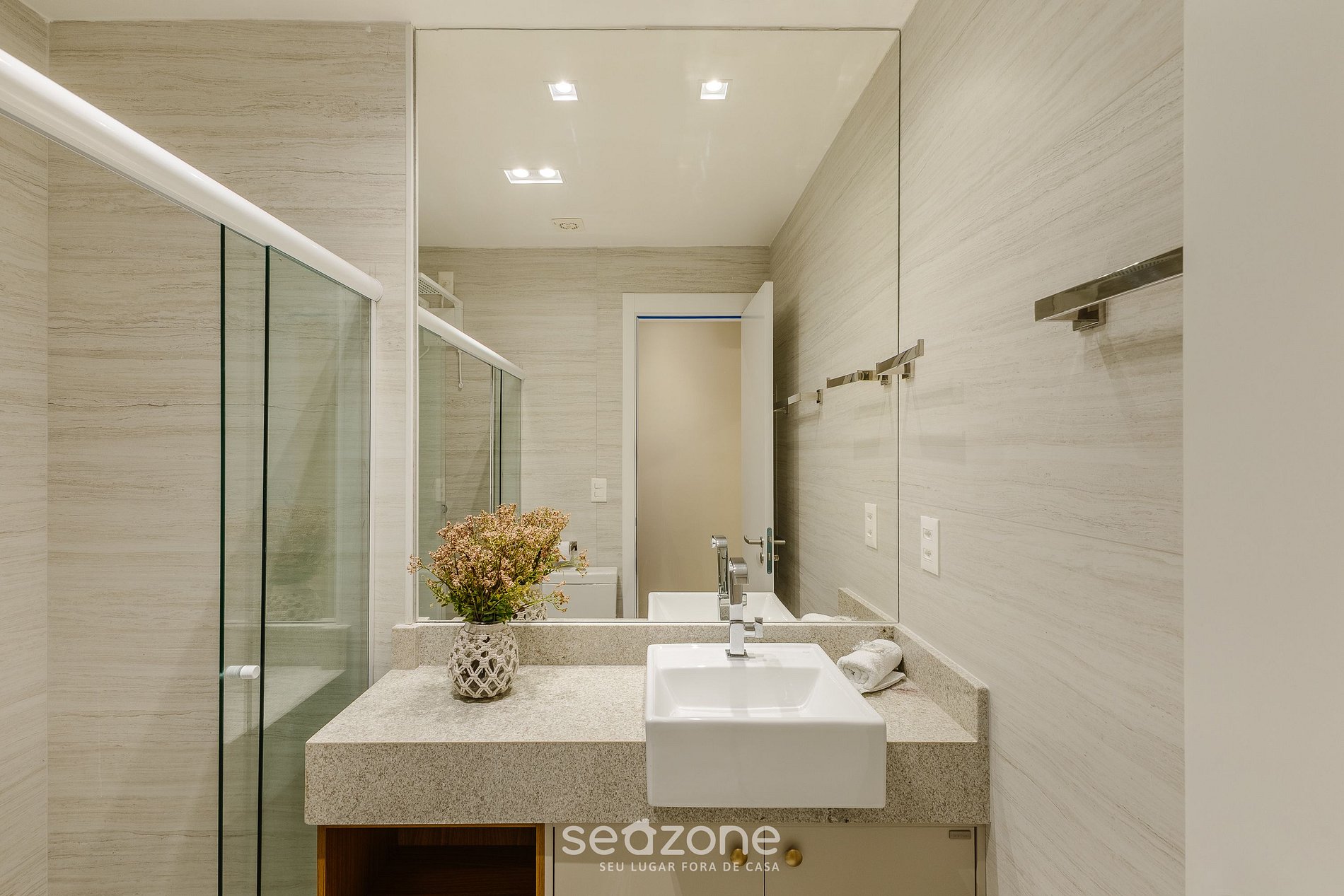 - Roupas de cama/banho e limpeza extras são solicitadas e pagas à parte, direto com a Seazone;
