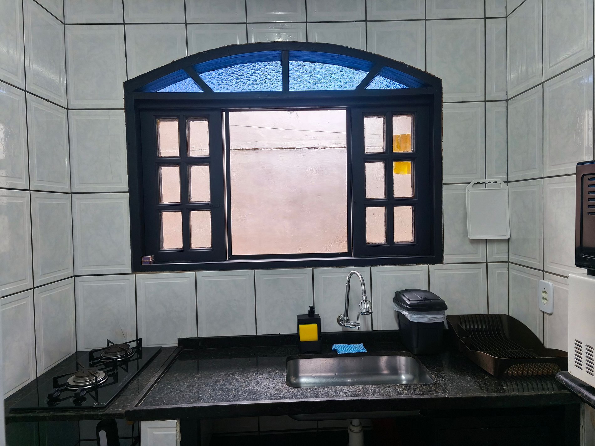 - Cozinha completa com geladeira, fogão cooktop a gás, forno elétrico, micro-ondas, sanduicheira, cafeteira elétrica, chaleira elétrica, liquidificador, panelas, louças e utensílios;