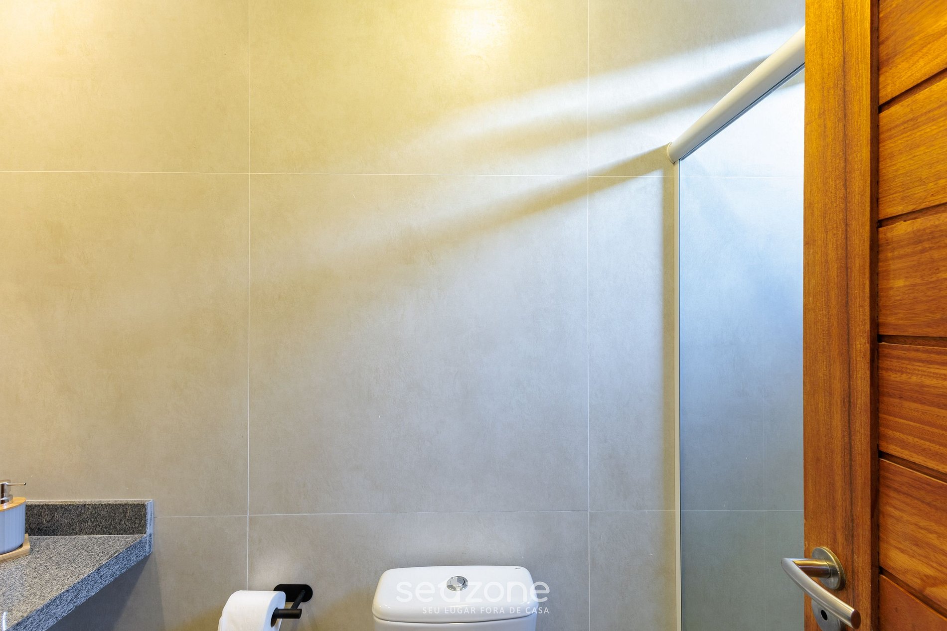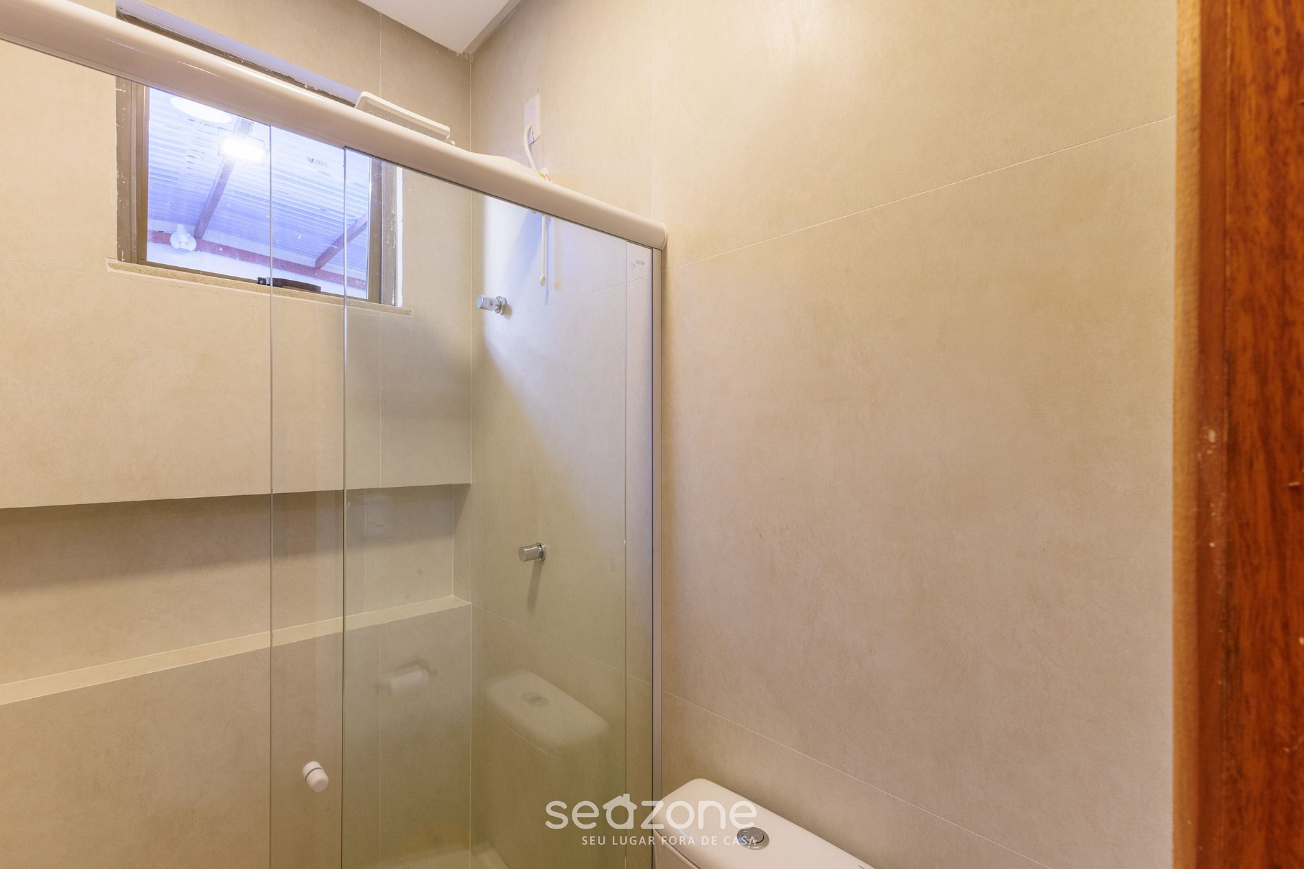 - 1 Suíte com cama de casal, Smart TV, arara para roupas e ar-condicionado;