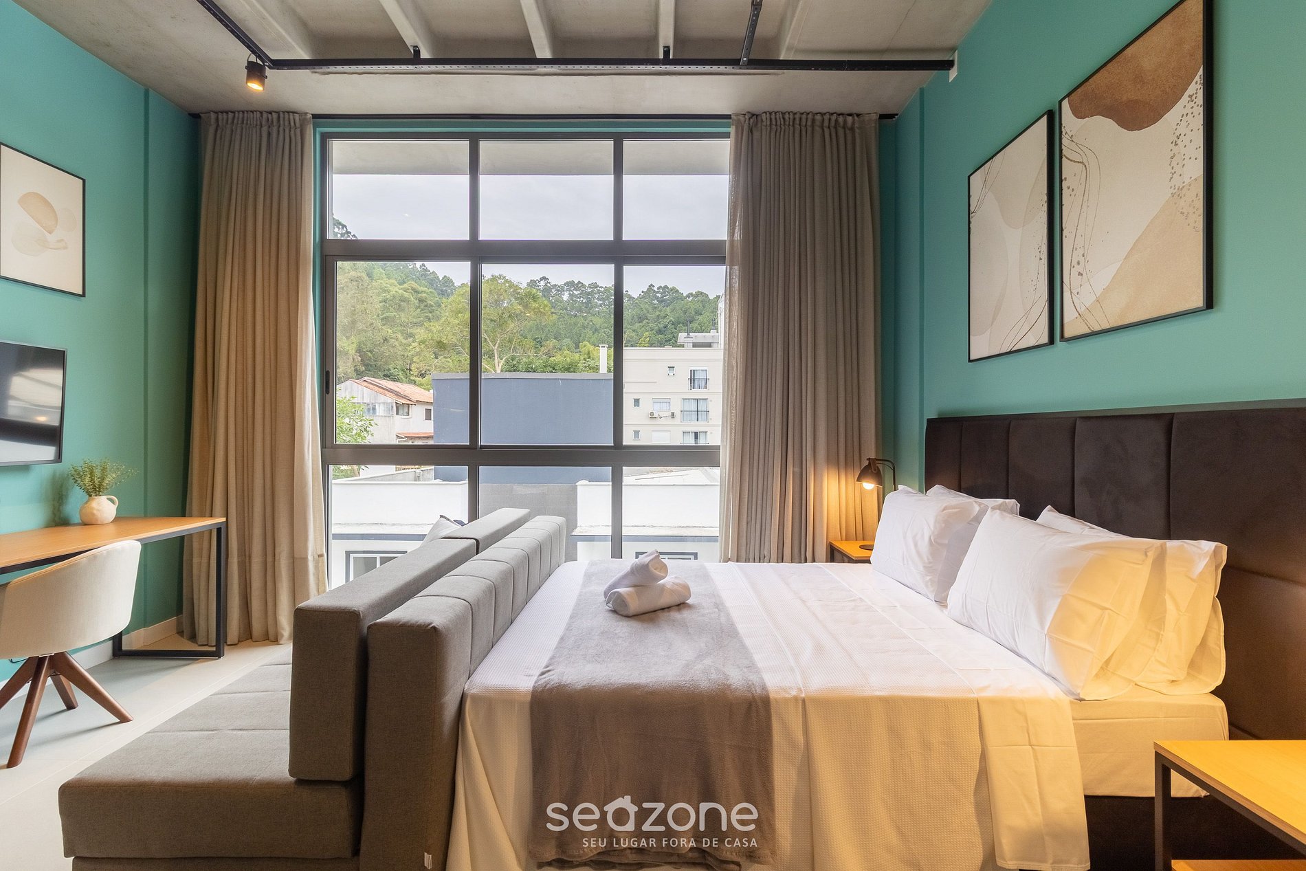 - Roupas de cama e banho de qualidade hoteleira (roupas de cama e toalhas extras são cobrados pela Seazone);
