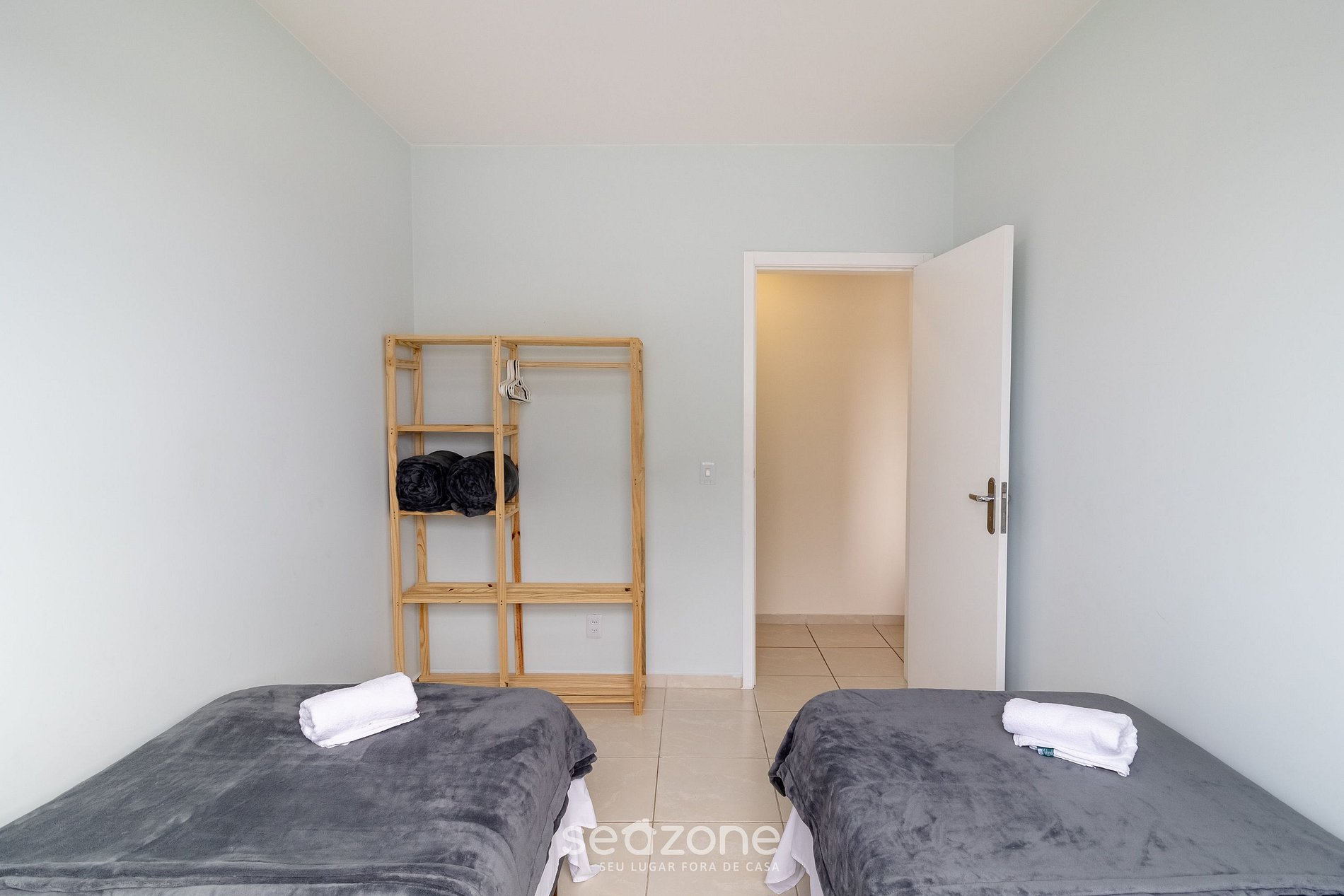 - 1 Quarto com 2 camas de solteiro, arara para roupas e ar-condicionado;