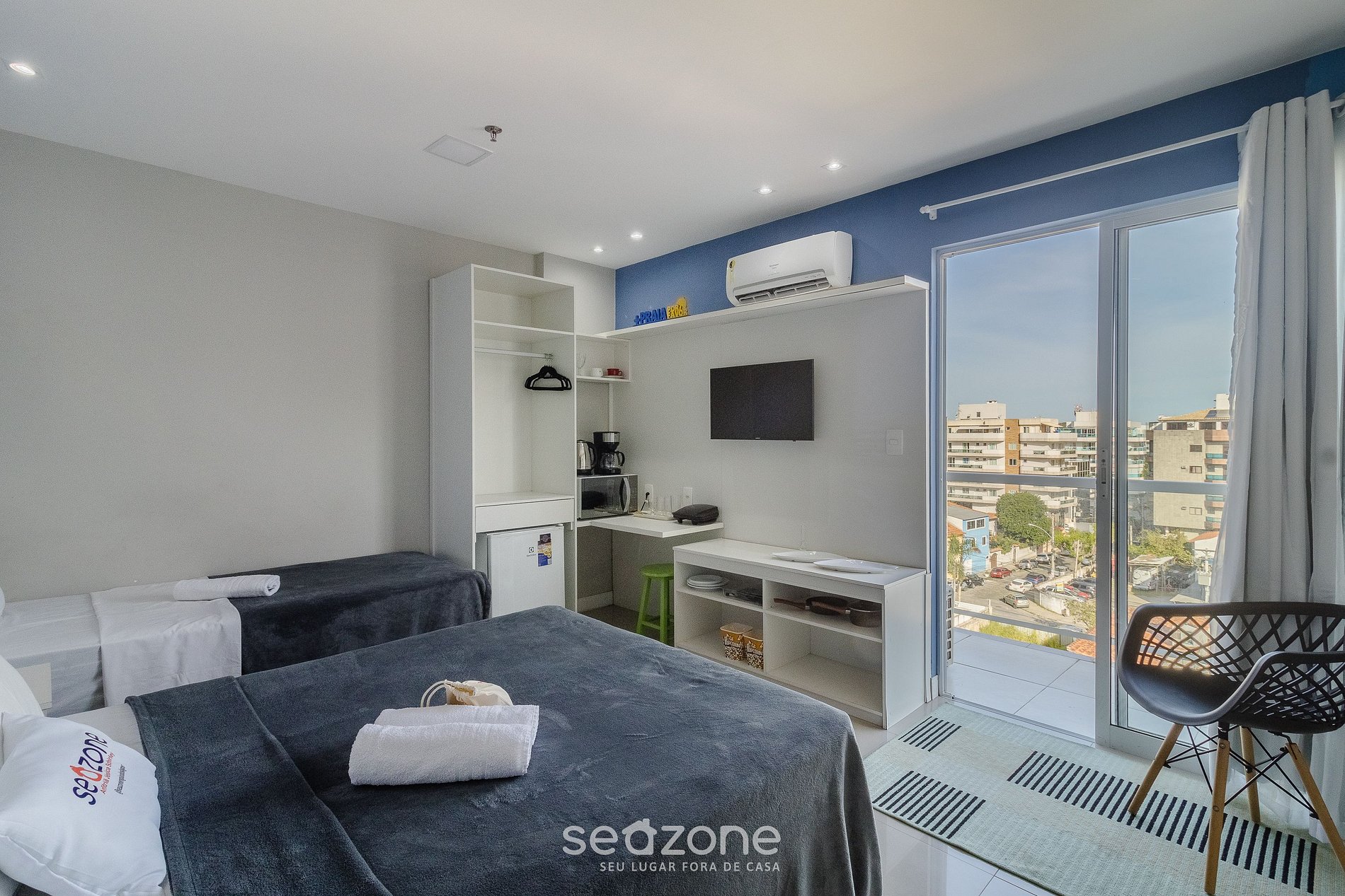 - Roupas de cama e banho de qualidade hoteleira (roupas de cama e toalhas extras são cobrados pela Seazone);