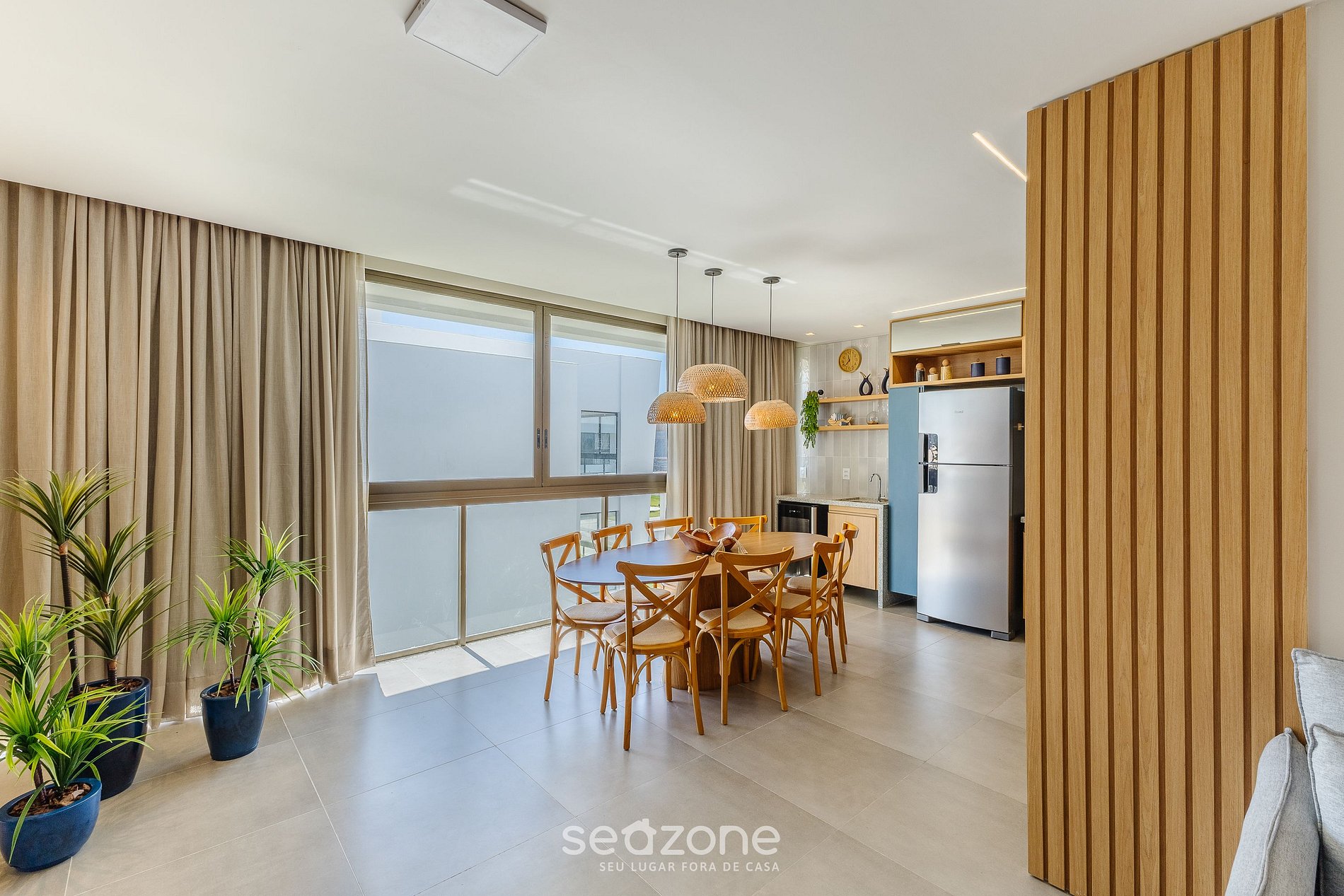 - Espaço para jantar com mesa e 08 cadeiras;