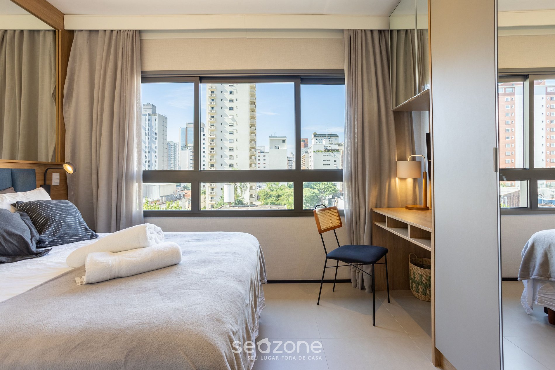 Descubra a energia vibrante de São Paulo hospedando-se no coração de tudo: a icônica Rua Augusta! Imagine acordar em um estúdio moderno, super confortável e projetado para a máxima praticidade, pronto para explorar a metrópole.
