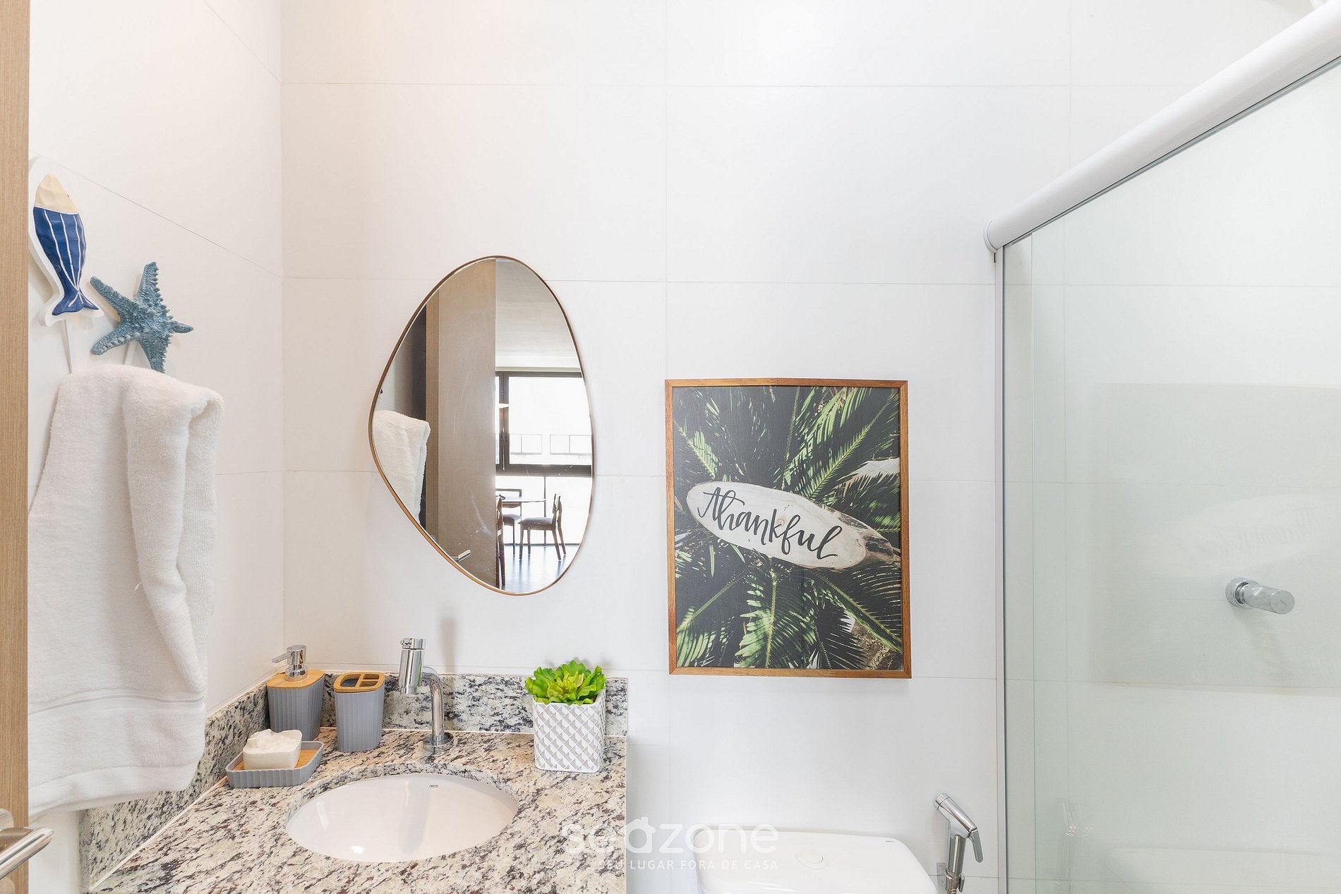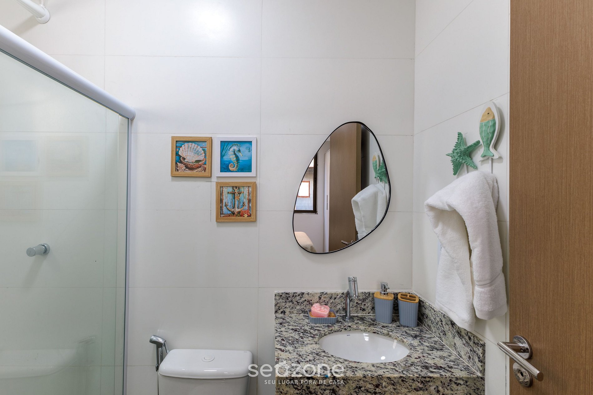 - Roupas de cama/banho e limpeza extras são solicitadas e pagas à parte, direto com a Seazone;