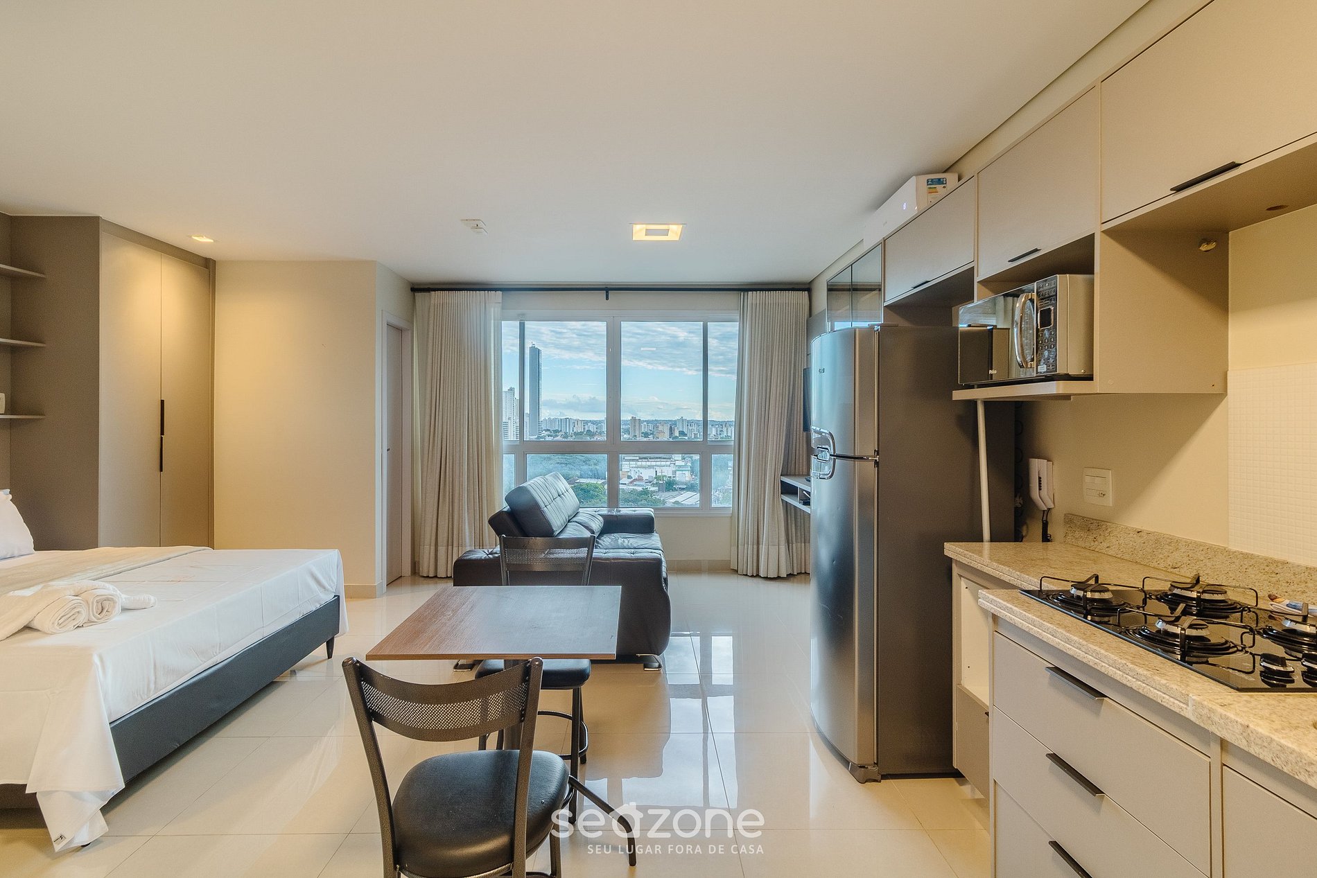 - Roupas de cama e banho de qualidade hoteleira (roupas de cama e toalhas extras são cobrados pela Seazone);