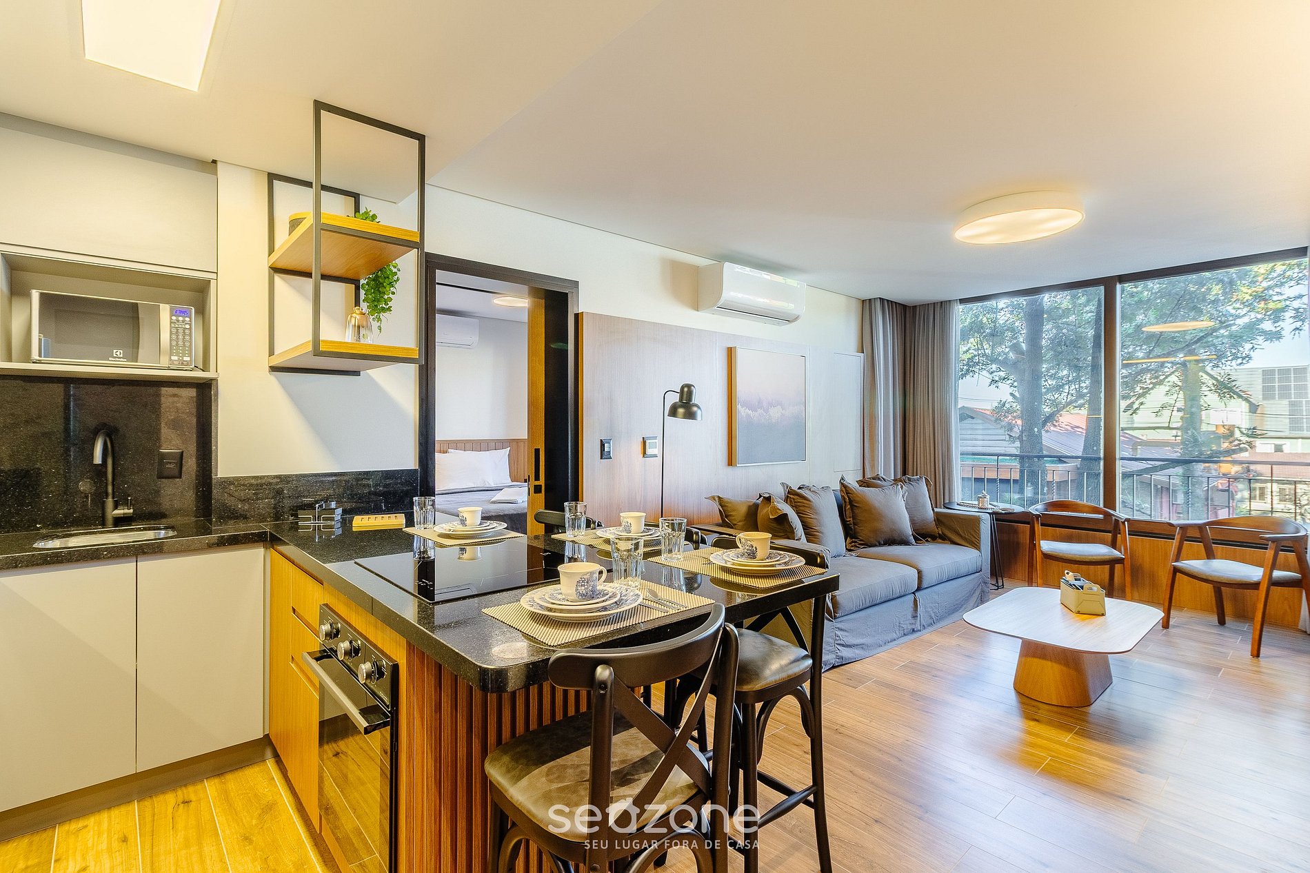 - Roupas de cama e banho de qualidade hoteleira (roupas de cama e toalhas extras são cobrados pela Seazone);