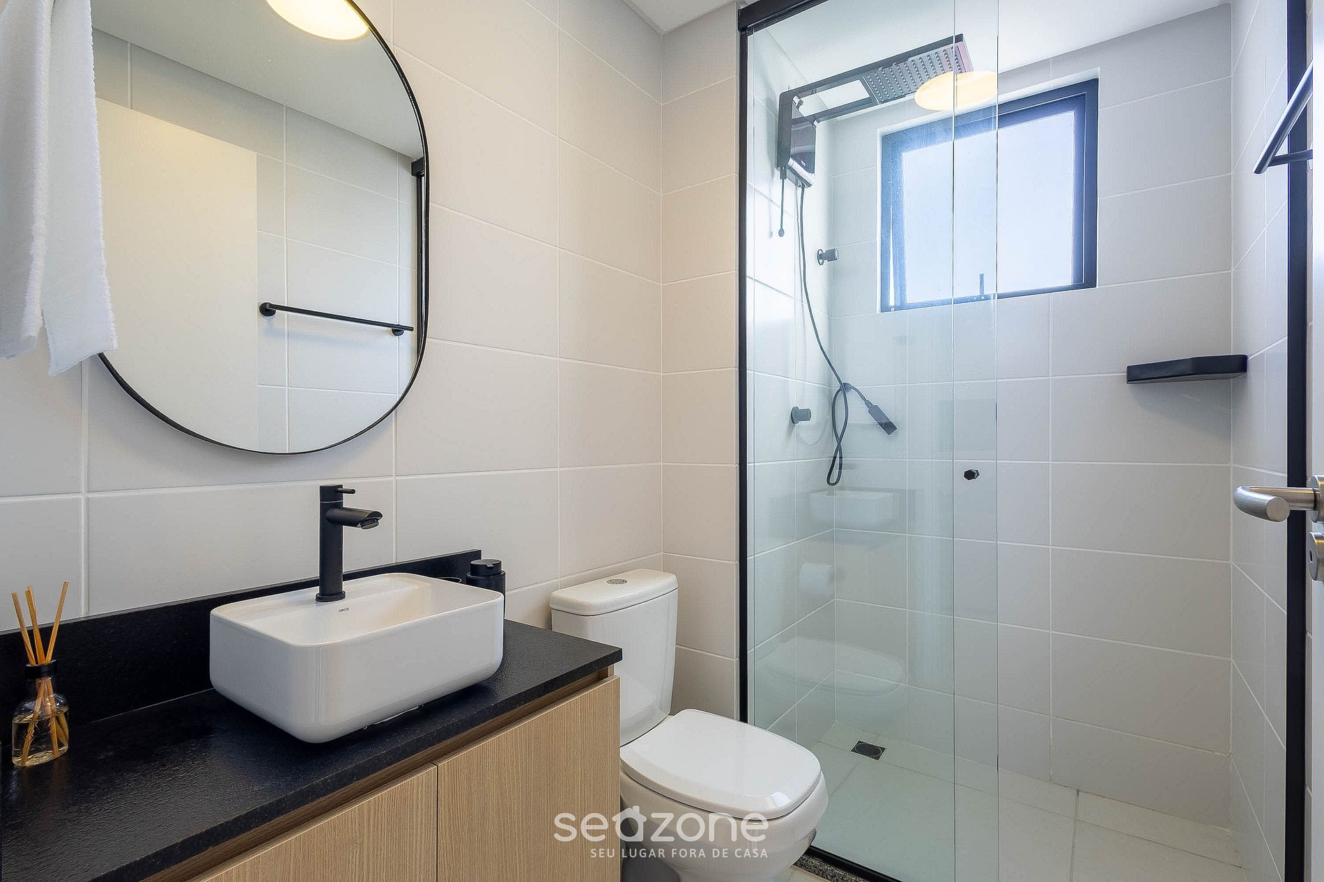 Com ar-condicionado em todos os ambientes, suíte com cama queen, quarto adicional, cozinha completa e varanda gourmet com churrasqueira e vista para o mar. A sala, equipada com sofá e Smart TV, é ideal para momentos de descontração. O condomínio oferece piscina, jacuzzi e um espaço pet. A localização privilegiada, a poucos passos da praia, coloca a cidade a seu alcance.