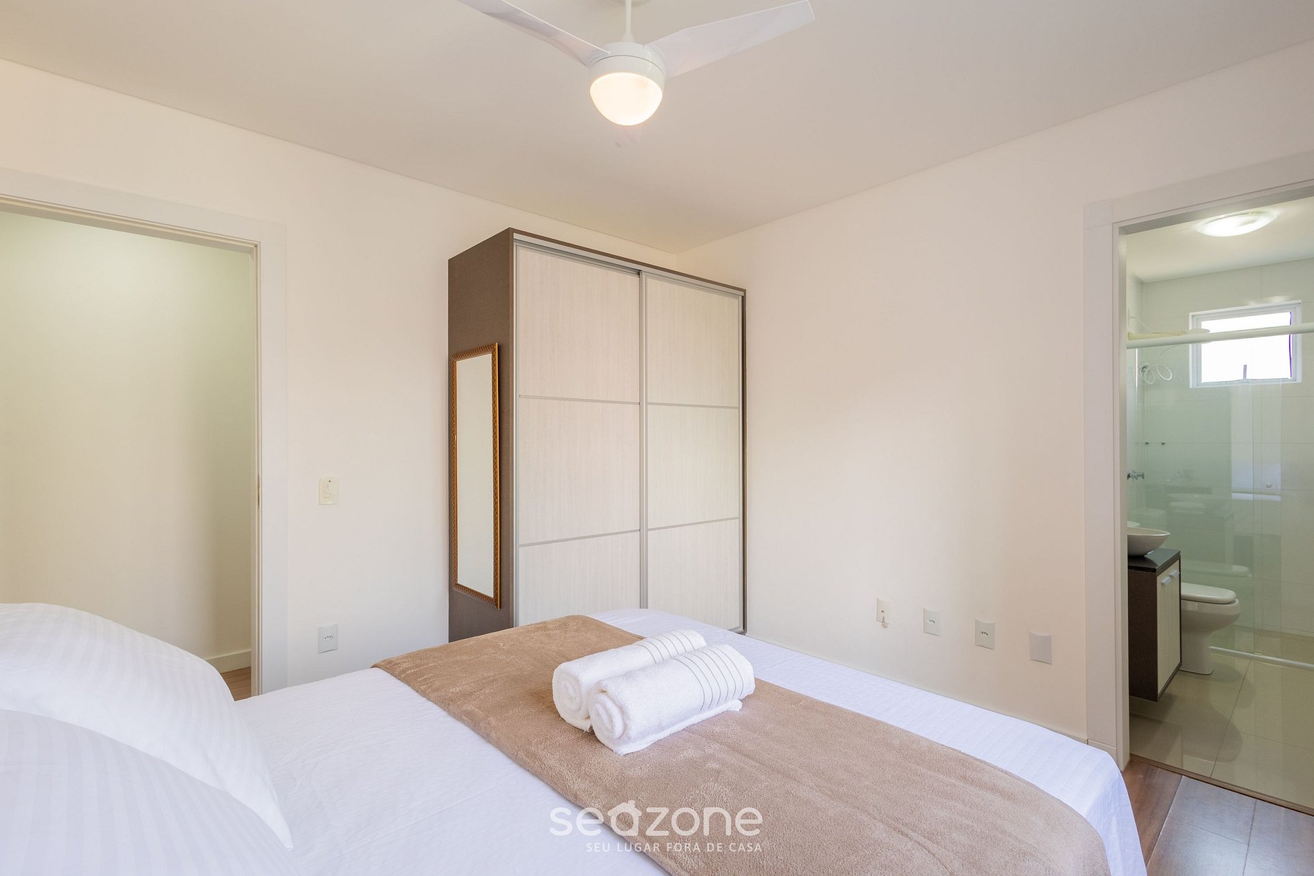 - 1 Suíte com cama queen, armário e ventilador de teto;