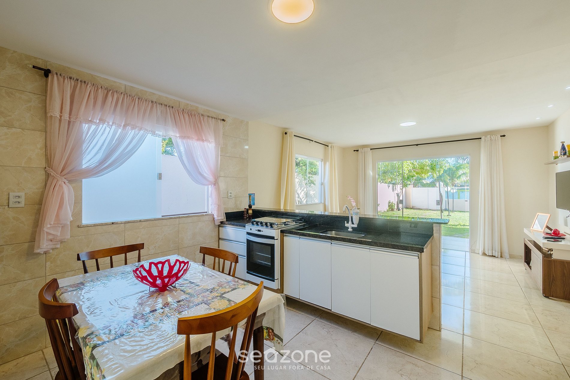 - Roupas de cama/banho e limpeza extras são solicitadas e pagas à parte, direto com a Seazone;