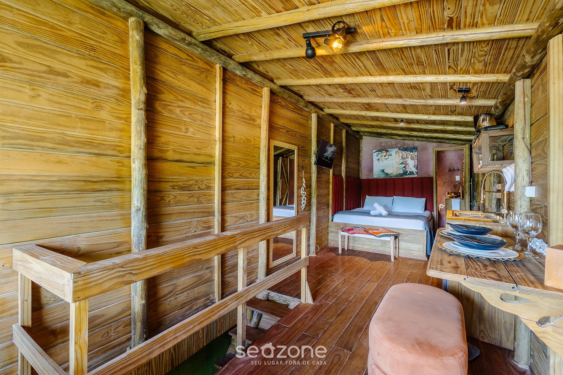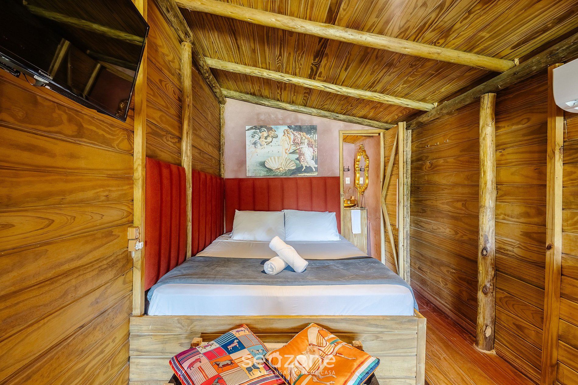 - Mezzanino com 1 cama queen, Smart TV, arara para roupas e ar-condicionado;