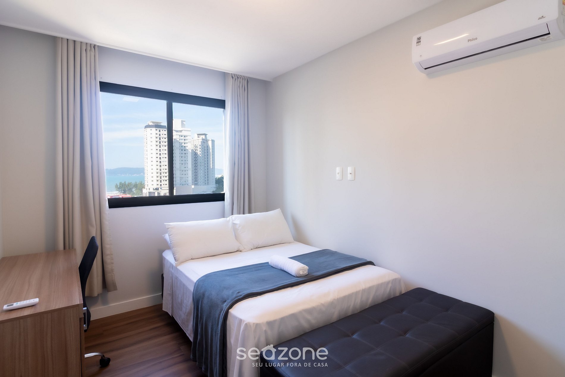 - Roupas de cama e banho de qualidade hoteleira (roupas de cama e toalhas extras são cobrados pela Seazone);