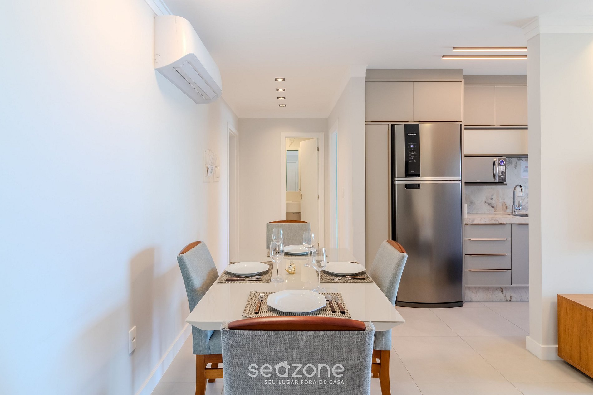 - Espaço para jantar com mesa e 4 cadeiras;