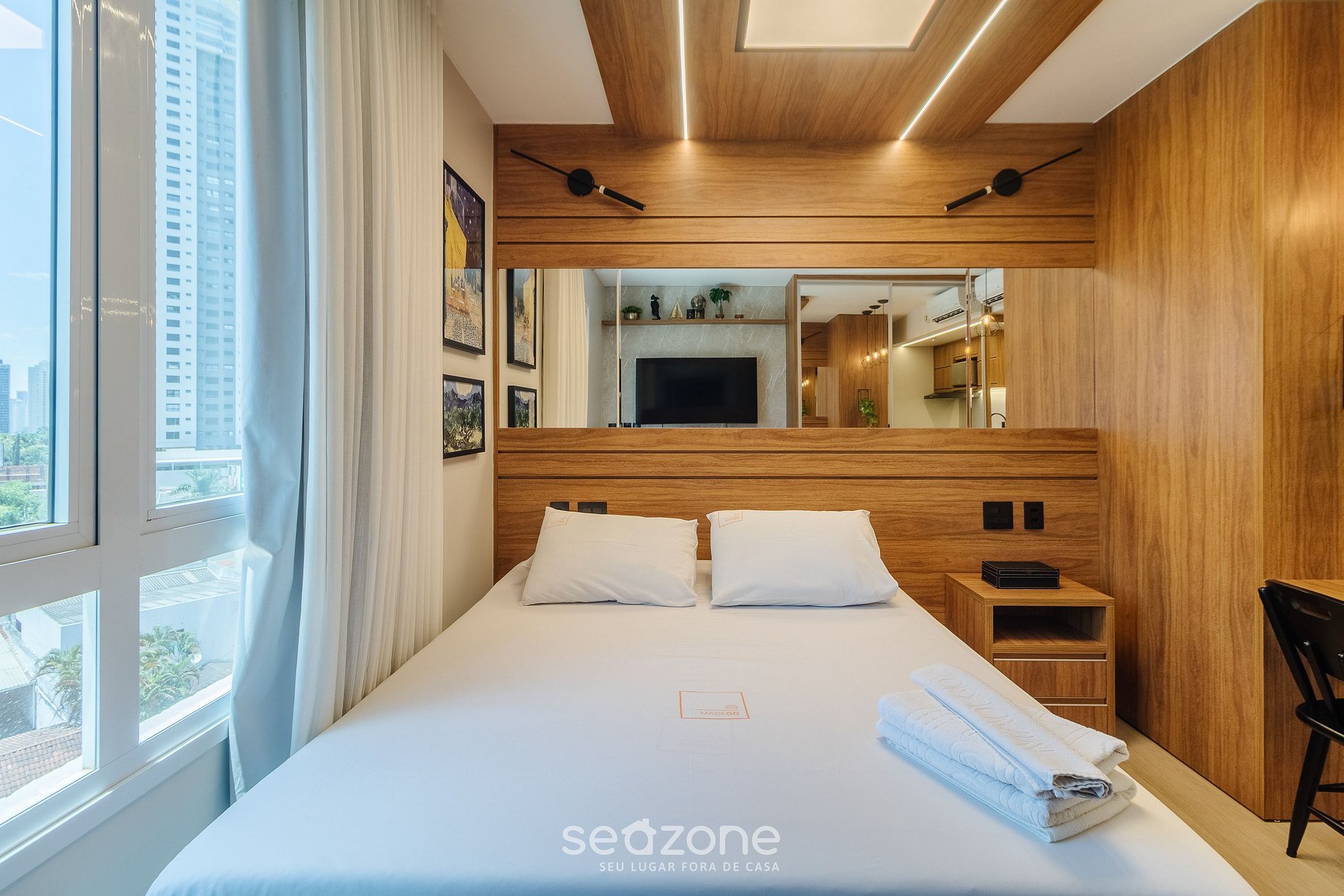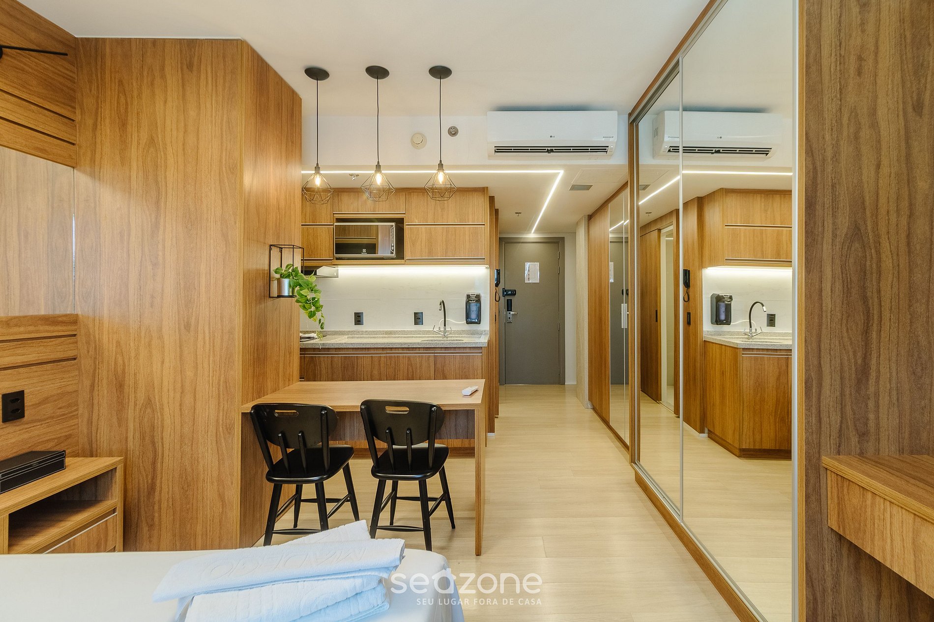 - Roupas de cama e banho de qualidade hoteleira (roupas de cama e toalhas extras são cobrados pela Seazone);
