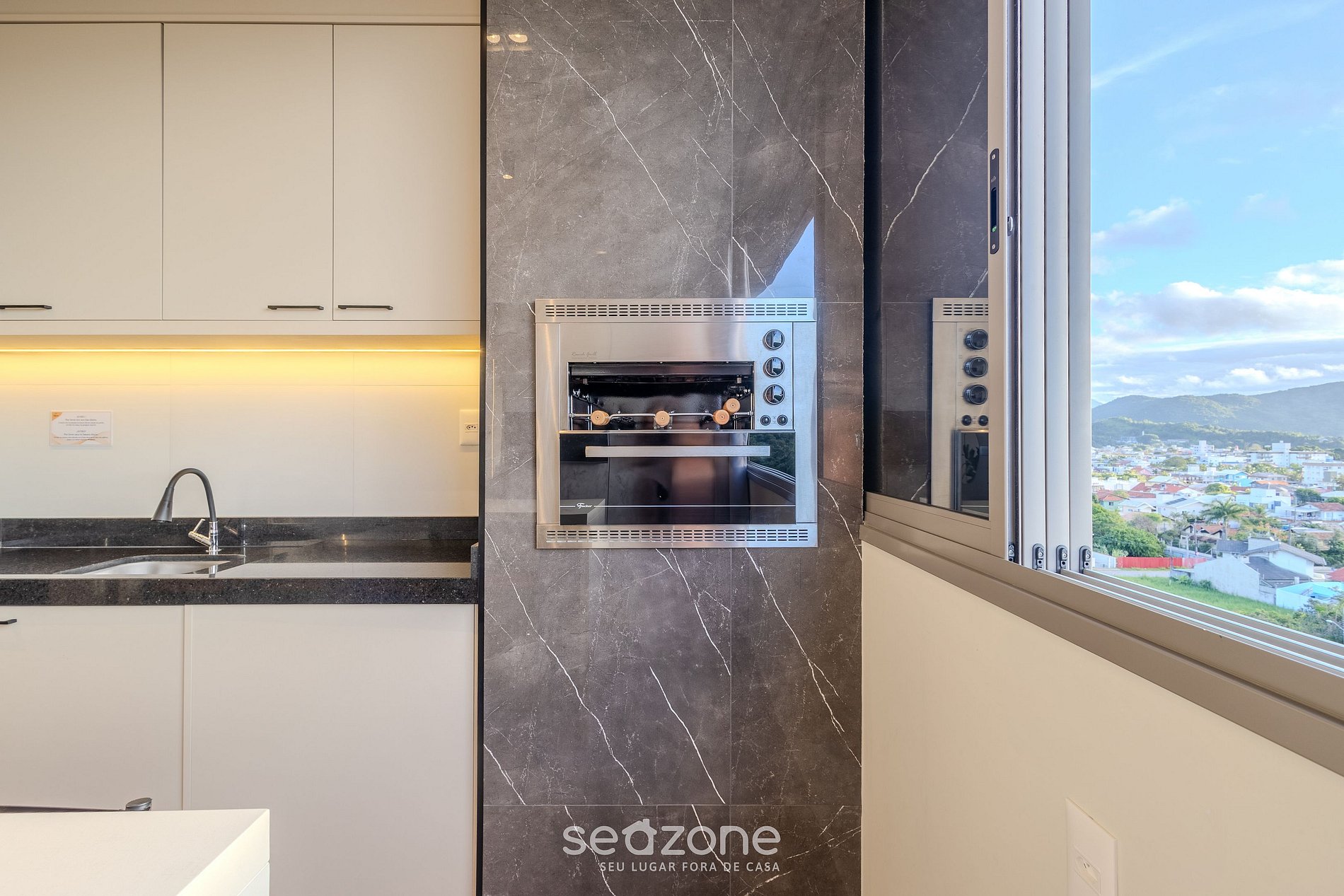 - Cozinha completa com geladeira, cooktop, micro-ondas, Airfryer, sanduicheira, Kit café (suporte para filtro, garrafa térmica), chaleira elétrica, liquidificador, taças de vinho, panelas, louças e utensílios;