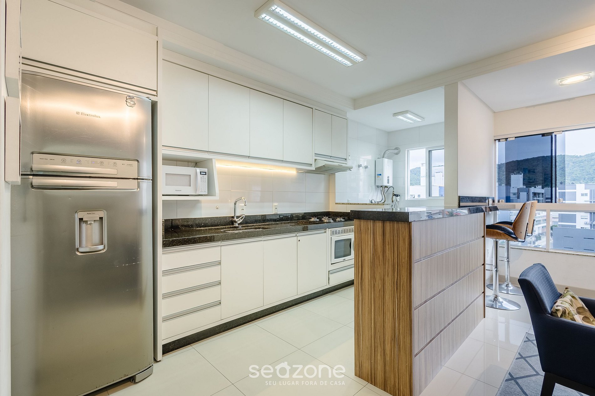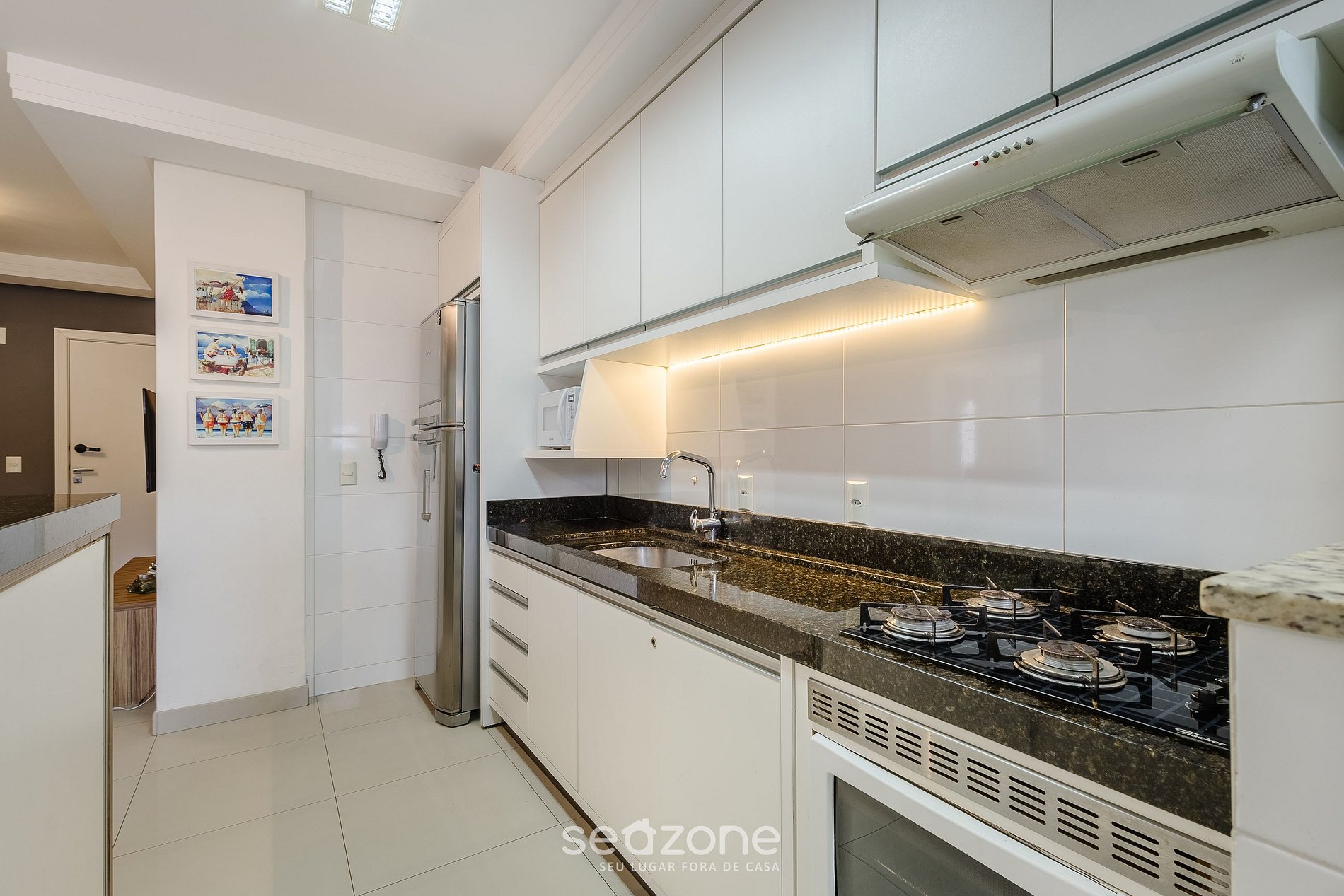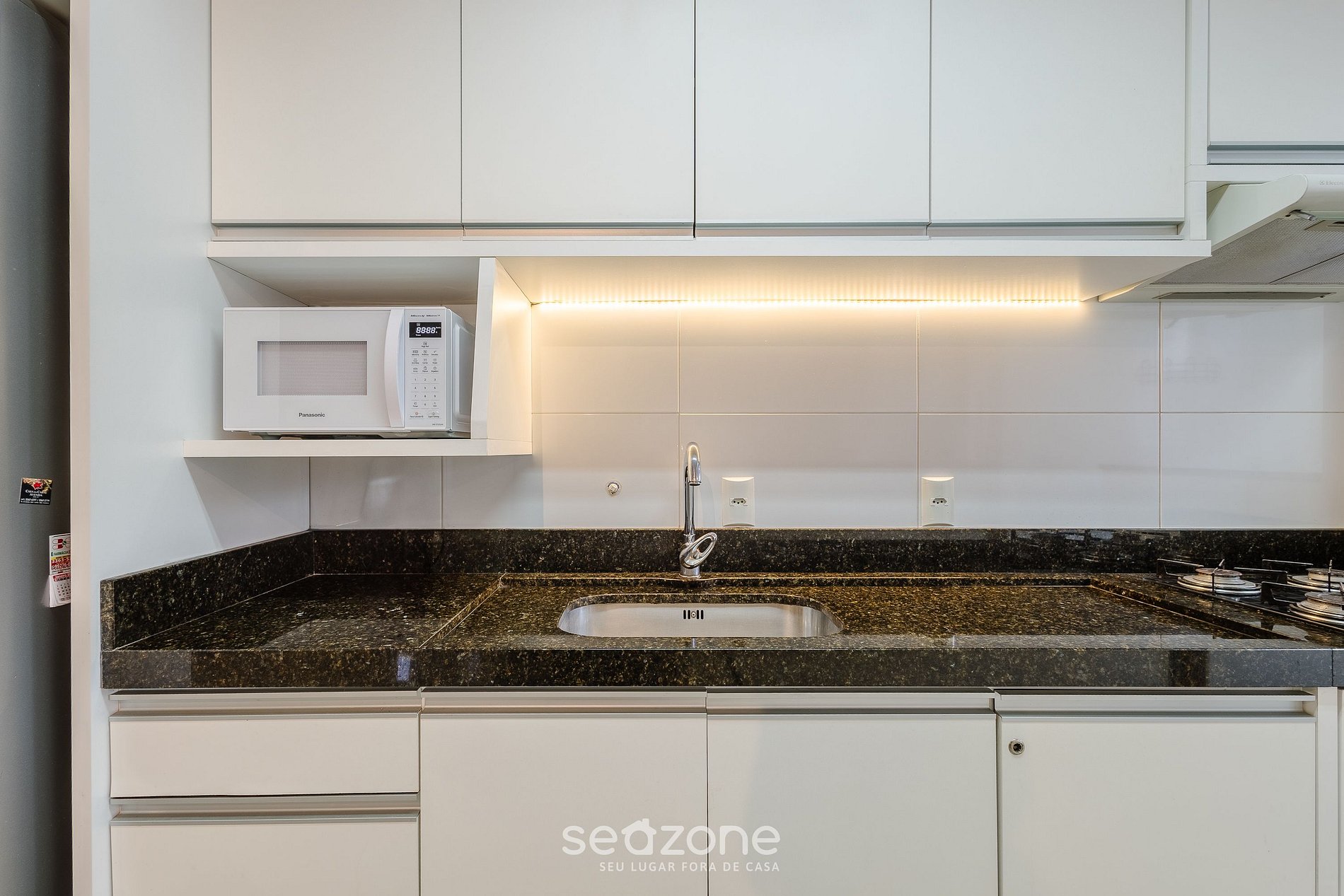 - Cozinha completa com geladeira, fogão cooktop (indução), forno elétrico, micro-ondas, sanduicheira, kit café (suporte para filtro, garrafa térmica), chaleira, liquidificador, taças de vinho, panelas, louças e utensílios;