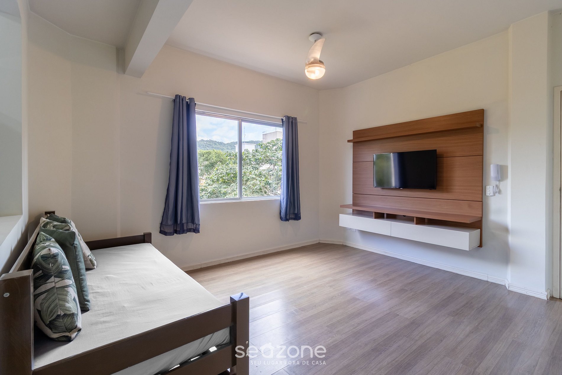 Este apartamento é a escolha ideal para quem busca conforto e praticidade. Com um quarto confortável, sala de estar com sofá-cama e Smart TV, cozinha completa e Wi-Fi, oferece uma experiência exclusiva. A vista panorâmica para a cidade e natureza torna a estadia ainda mais encantadora. Localizado a apenas 700 metros da Praia dos Ingleses, e com fácil acesso a restaurantes e mercados.
