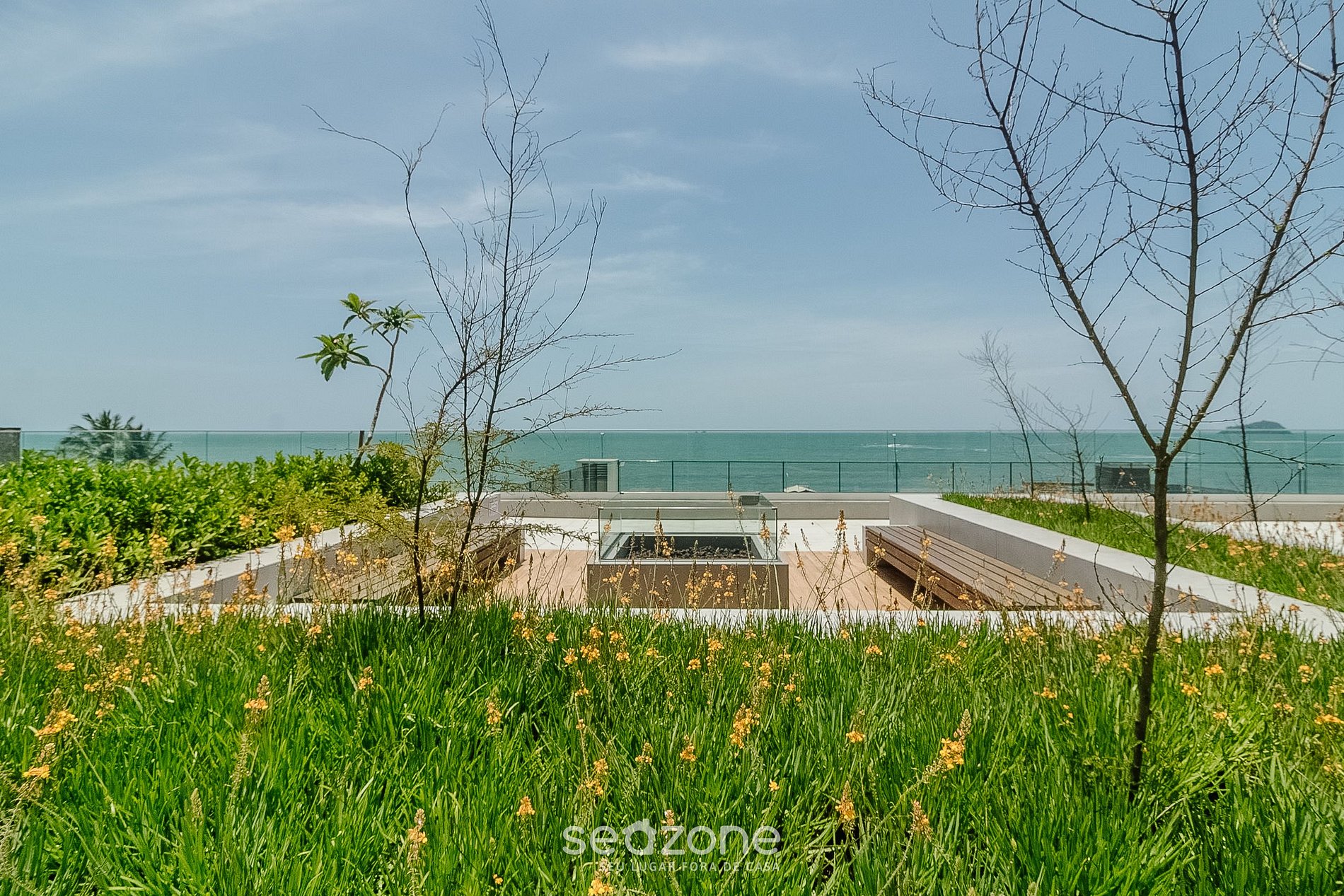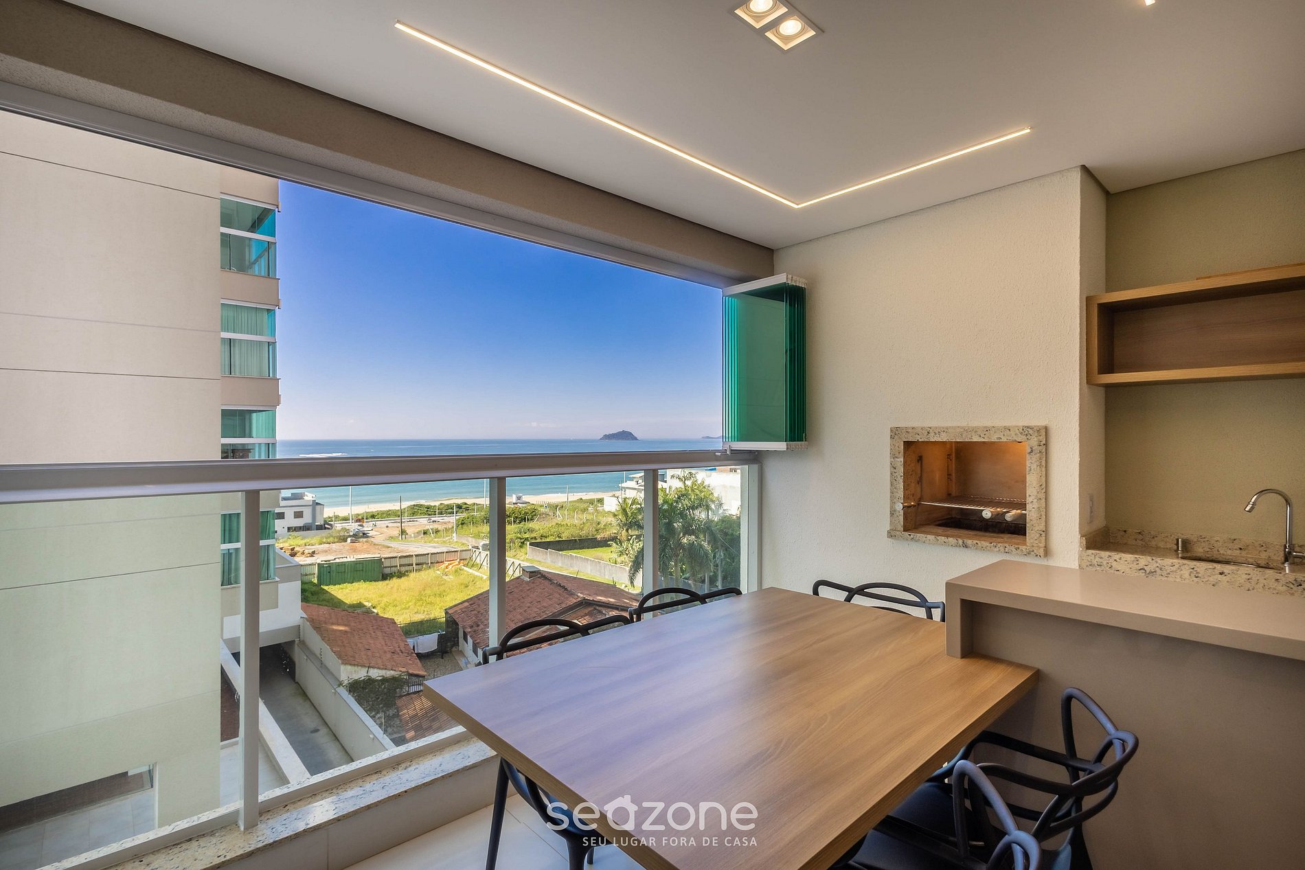 - Varanda com espaço gourmet com churrasqueira e vista mar;