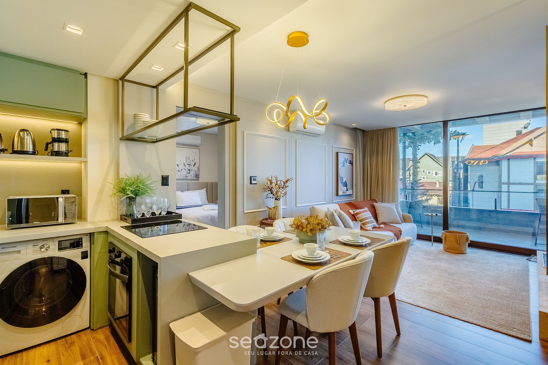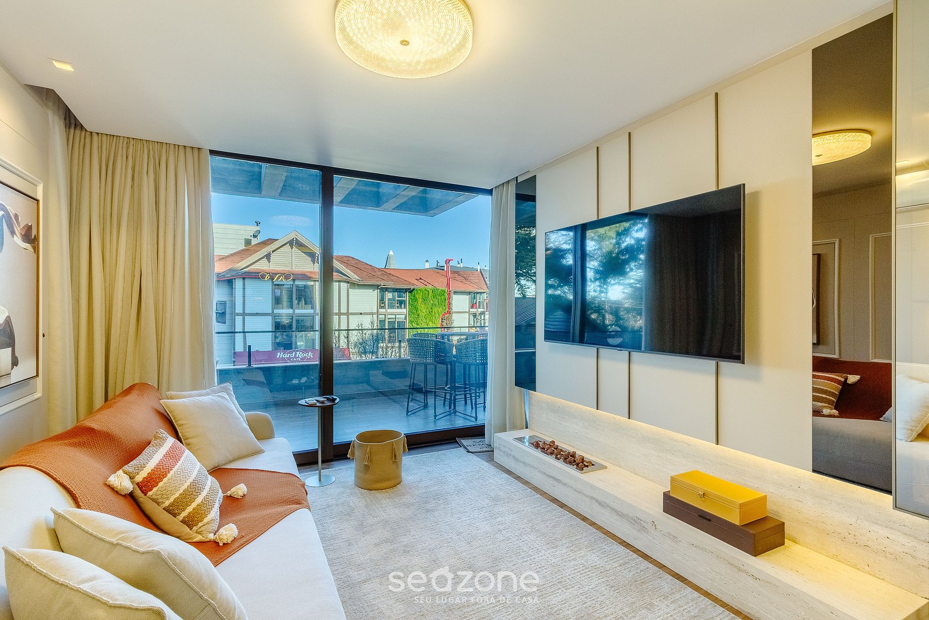 Sofisticação e conforto se unem neste apto completo com 2 quartos climatizados, smart TVs, sala com lareira e varanda mobiliada com vista espetacular. Cozinha planejada, Wi-Fi, máquina de lavar/secadora e garagem. Localizado no Coração de Gramado com vista privilegiada do Hard Rock Café e cercado da melhor gastronomia e atrativos turísticos da região.
